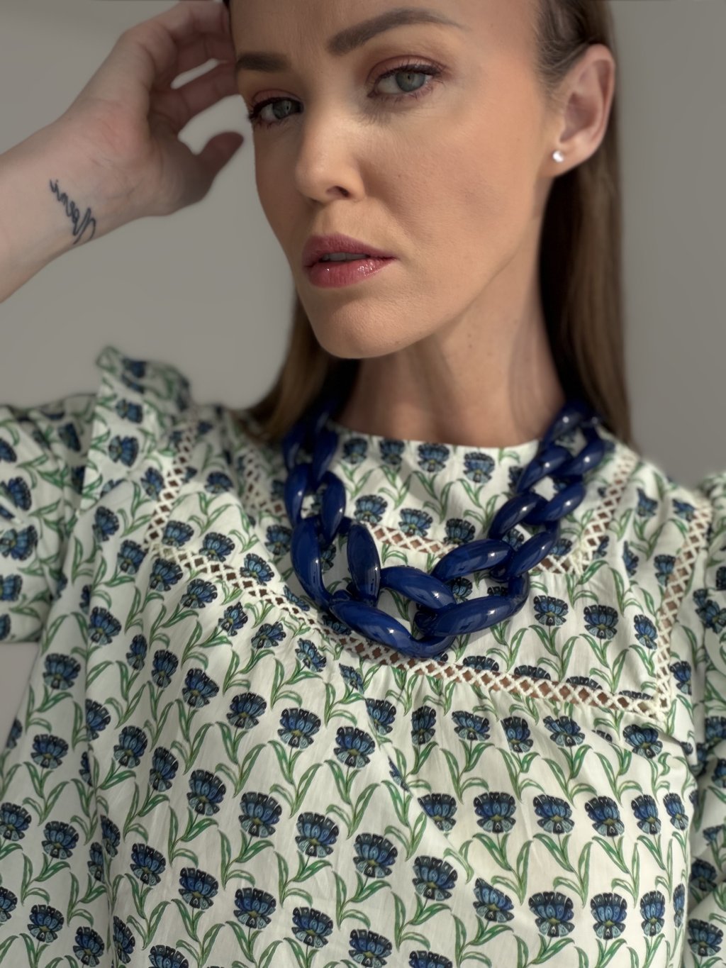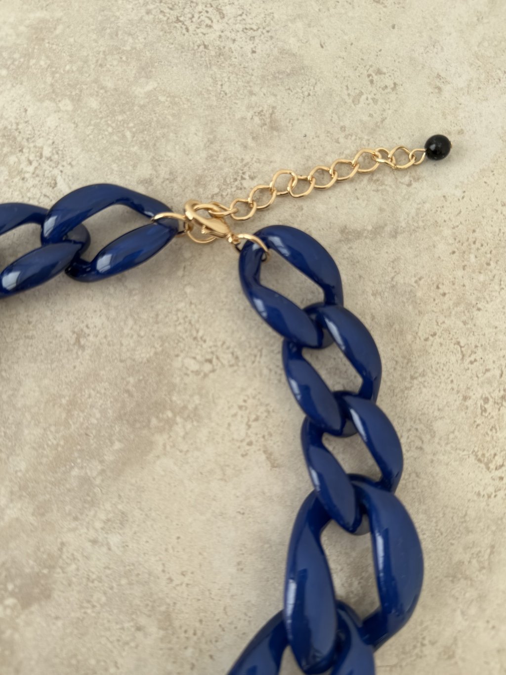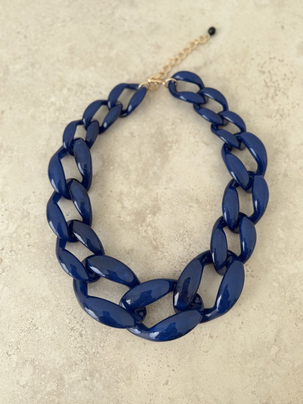 This statement necklace features oversized, glossy chain links that instantly elevate any look. The bold silhouette feels modern and fashion-forward, yet it’s easy to style for both casual and dressed-up outfits. It fastens with a lobster clasp and includes an extension chain, so you can adjust the length to suit different necklines or layering.