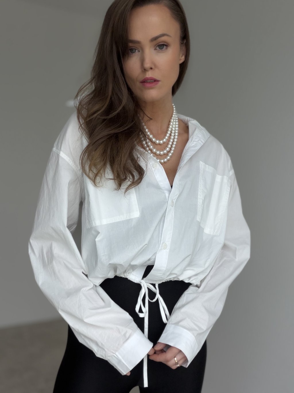 These pearls are a timeless accessory that instantly adds an elegant finish to any outfit. The multi-strand necklace creates a statement look while still feeling refined, and the layered design beautifully frames the neckline. It pairs perfectly with a shirt or a simple top for everyday styling, but it also elevates dressier combinations. A practical clasp with an extension chain allows you to adjust the length, so you can wear it exactly the way you like.