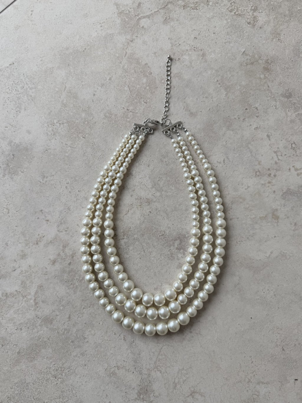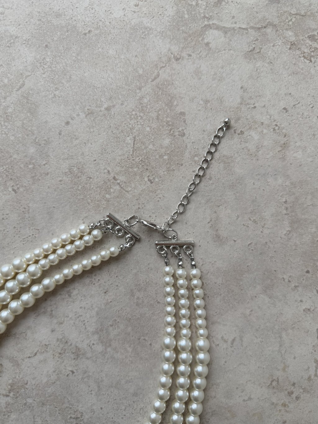 Elegant multi-strand pearl necklace that adds a sophisticated and feminine touch to your outfit. A tasteful accessory suitable for special occasions as well as stylish everyday wear.