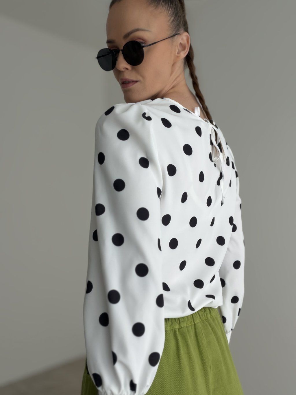 This blouse is an elegant and eye-catching piece that combines femininity, softness, and timeless style. The pattern gives it a playful yet still very refined character, making it a beautiful way to refresh both simple and more statement outfits. The cut feels light and polished, while the sleeves add a soft romantic touch to the overall look, making the blouse comfortable to wear throughout the day. It pairs beautifully with trousers, jeans, skirts, and more elegant pieces, making it suitable for everyday wear, work, and stylish outings.