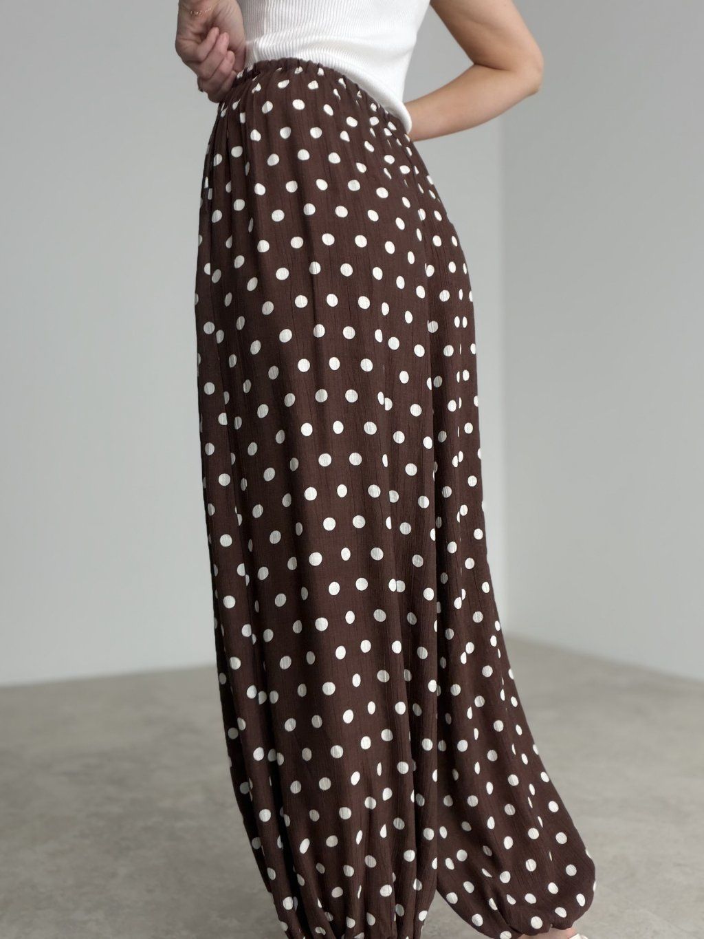 These trousers look feminine, playful, and at the same time very elegant. The loose, flowing cut offers excellent comfort while wearing and moves beautifully with the silhouette. The pattern adds a subtle fashion detail that makes them a standout piece while still being easy to style. The waist feels comfortable and flattering, making these trousers suitable for everyday wear as well as for more special occasions. They pair beautifully with a simple fitted top, a shirt, or an elegant blazer, allowing you to create a look that works both for daily wear and for a stylish outing.