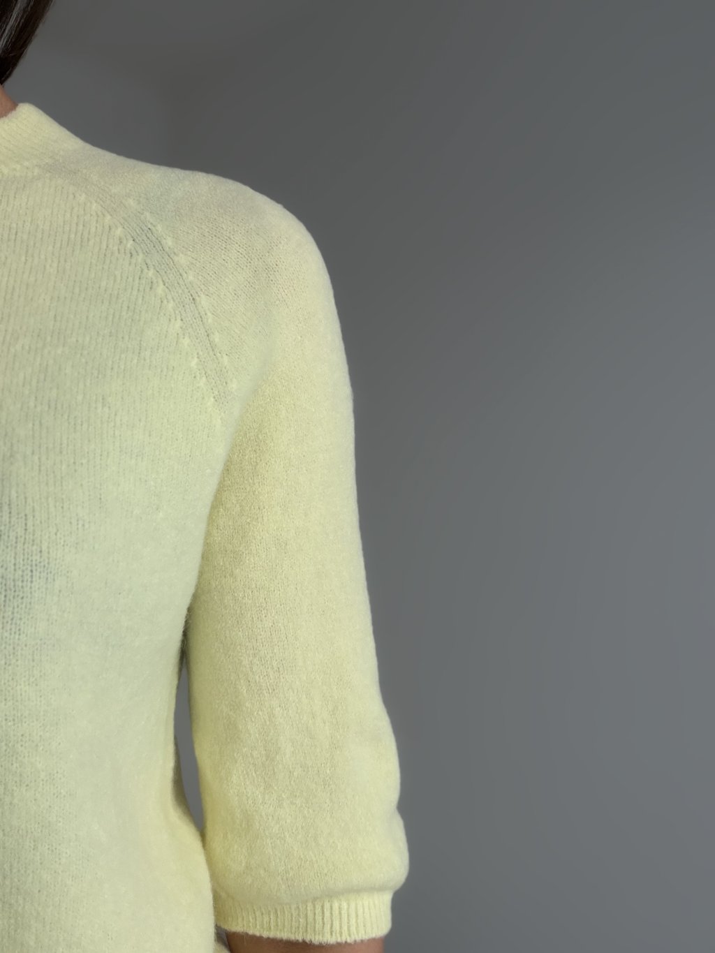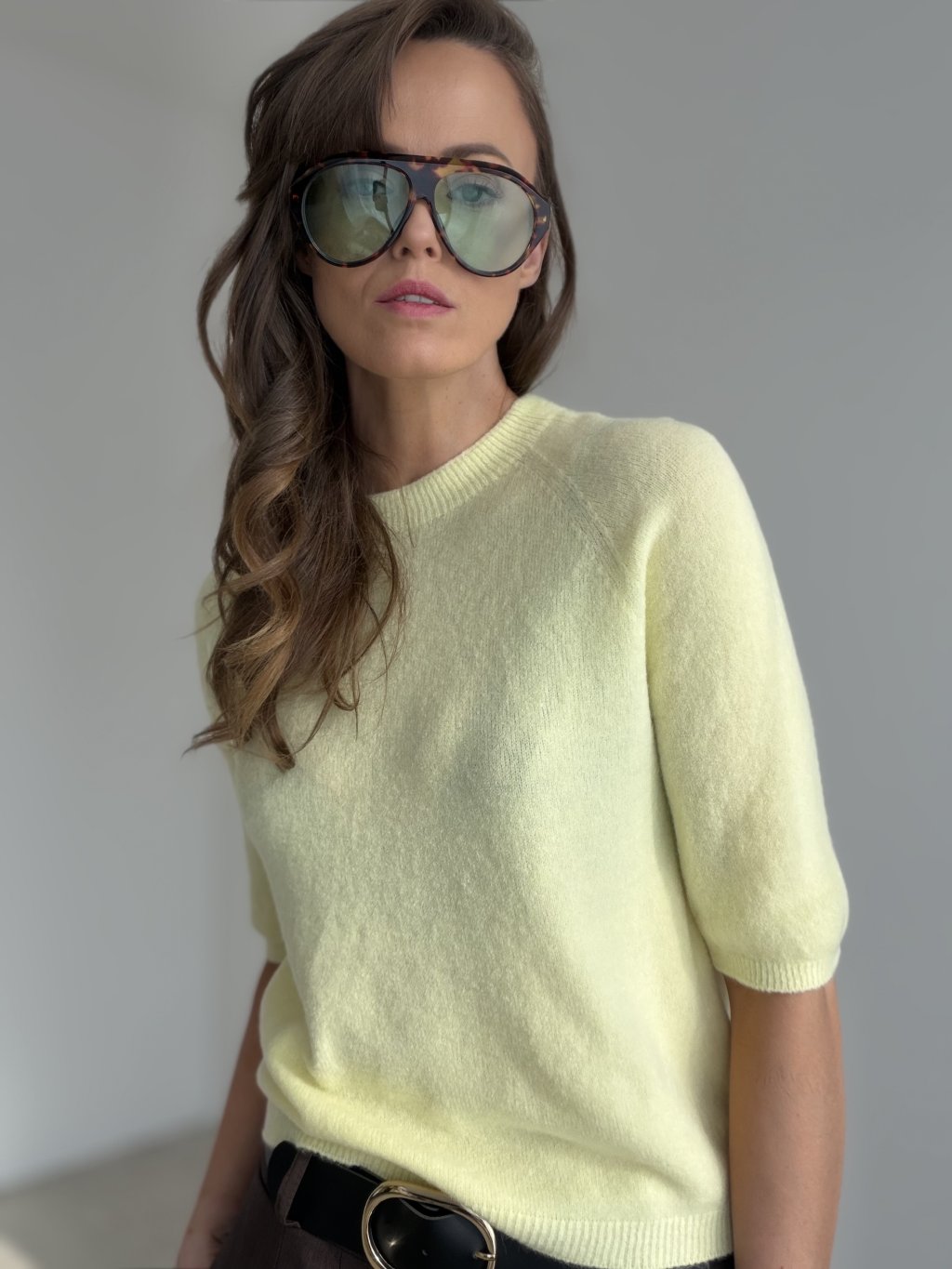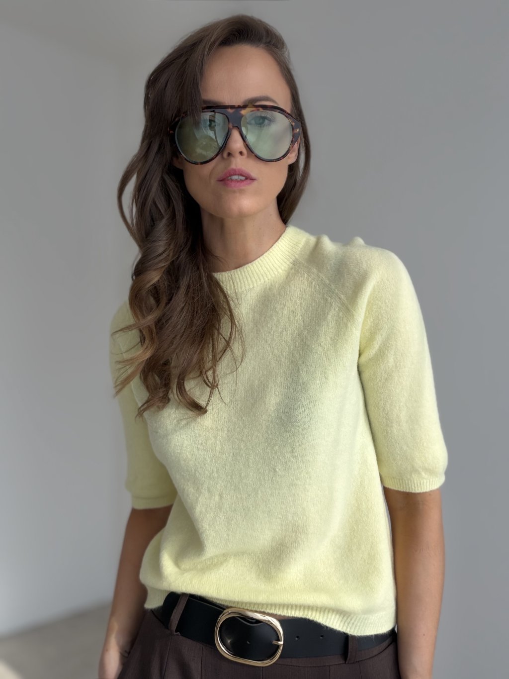 Short-sleeve pullover with a clean design that combines elegance and comfort. The soft knit feels pleasant on the skin and offers a lightweight feel, making it suitable for transitional seasons. Its minimalist cut pairs easily with tailored trousers, jeans, or skirts, creating a stylish everyday outfit. Perfect for both work and casual occasions.
