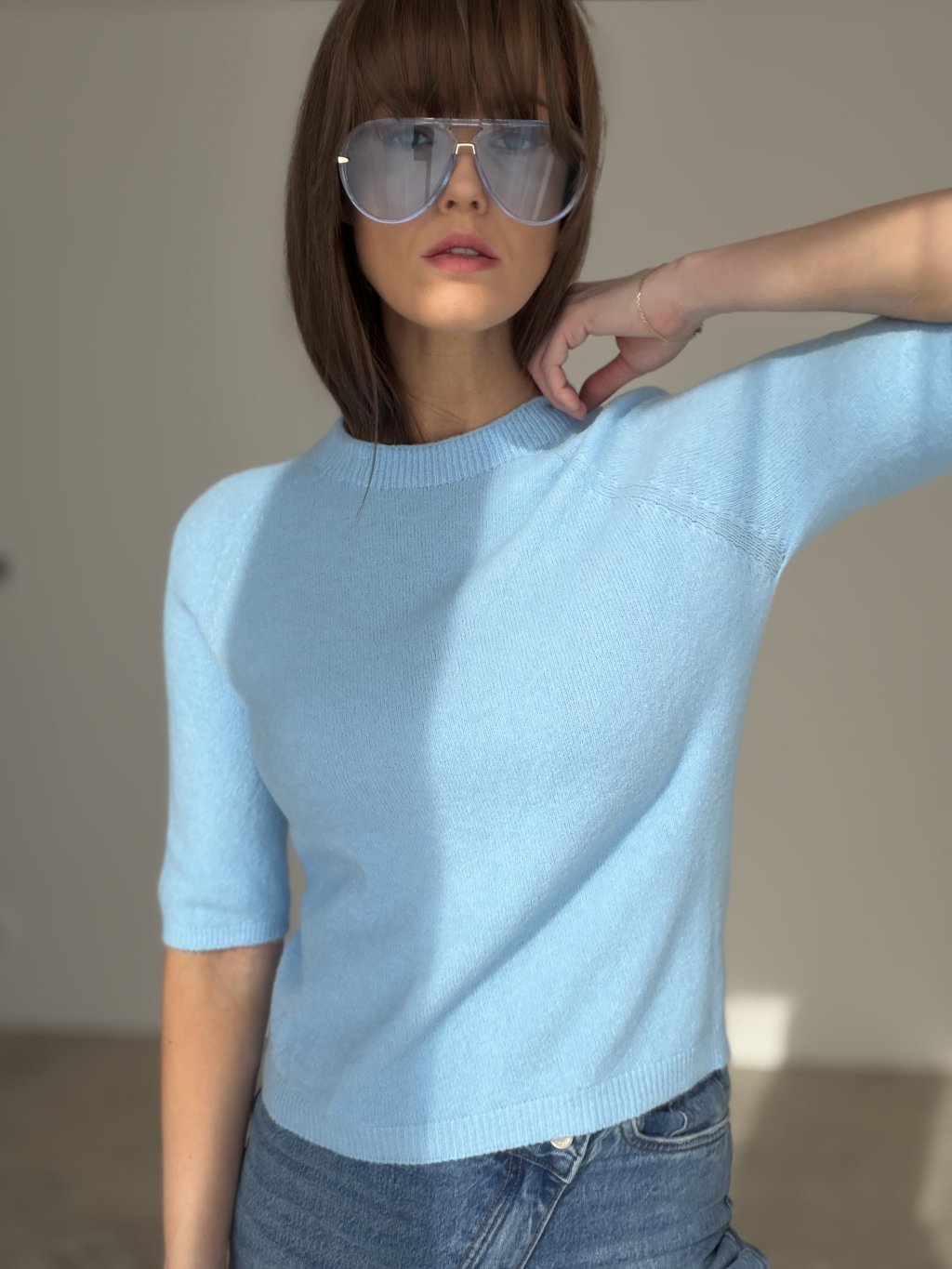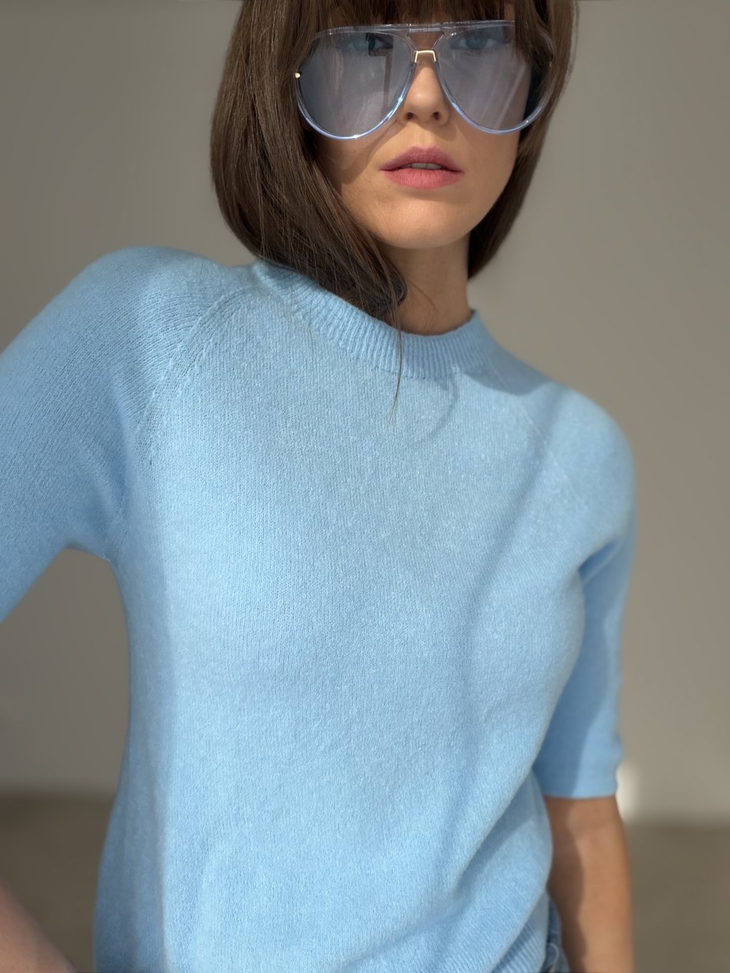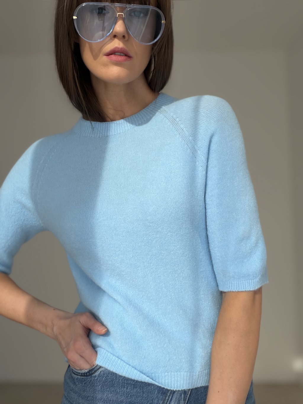 Short-sleeve pullover with a clean design that combines elegance and comfort. The soft knit feels pleasant on the skin and offers a lightweight feel, making it suitable for transitional seasons. Its minimalist cut pairs easily with tailored trousers, jeans, or skirts, creating a stylish everyday outfit. Perfect for both work and casual occasions.