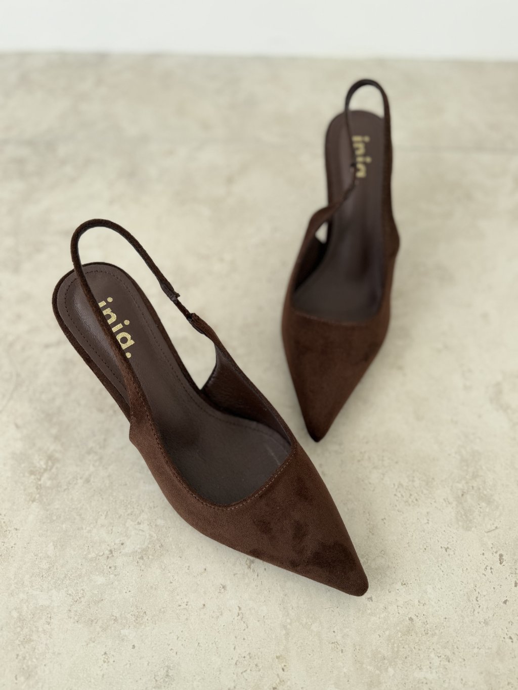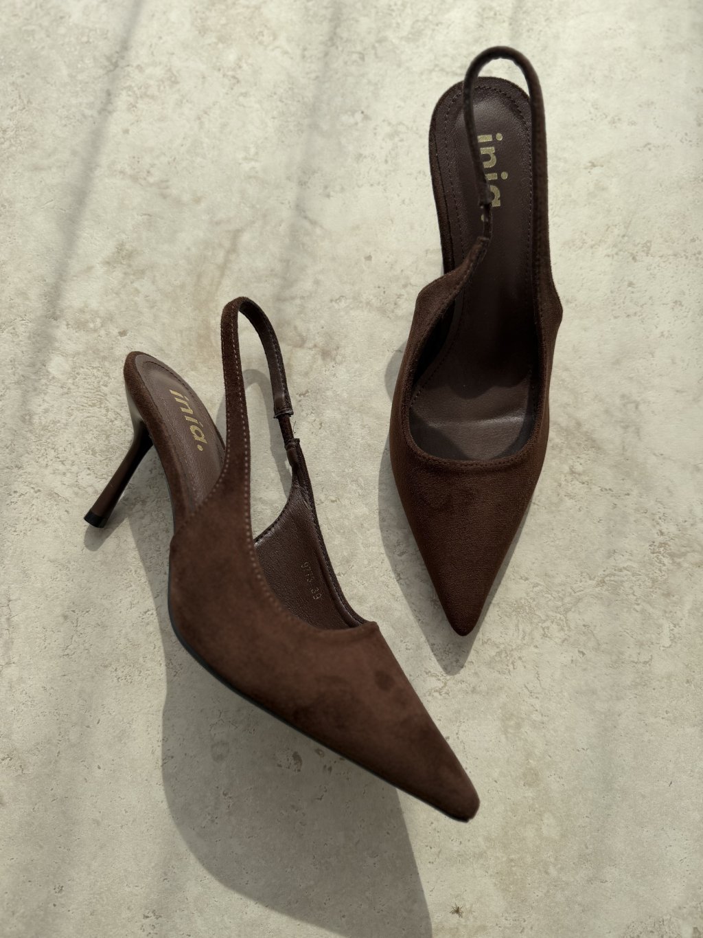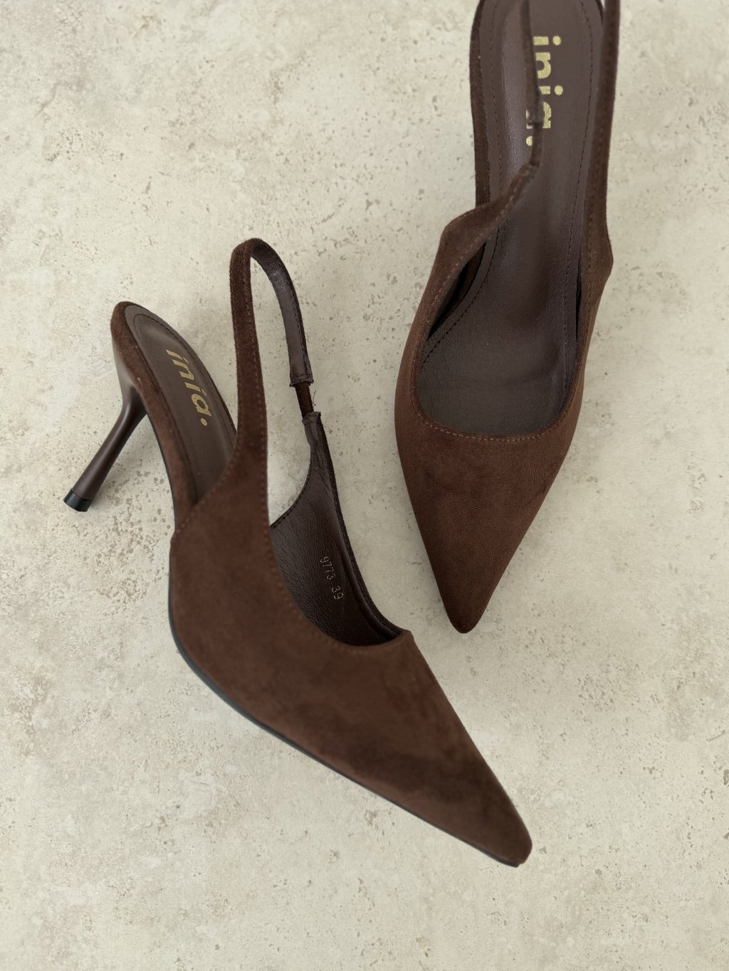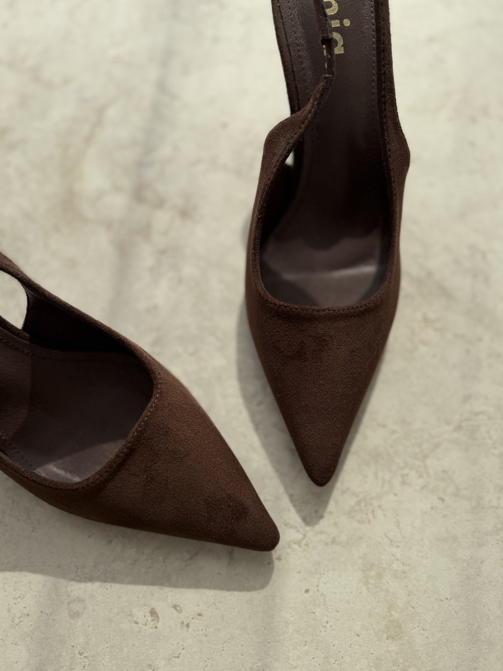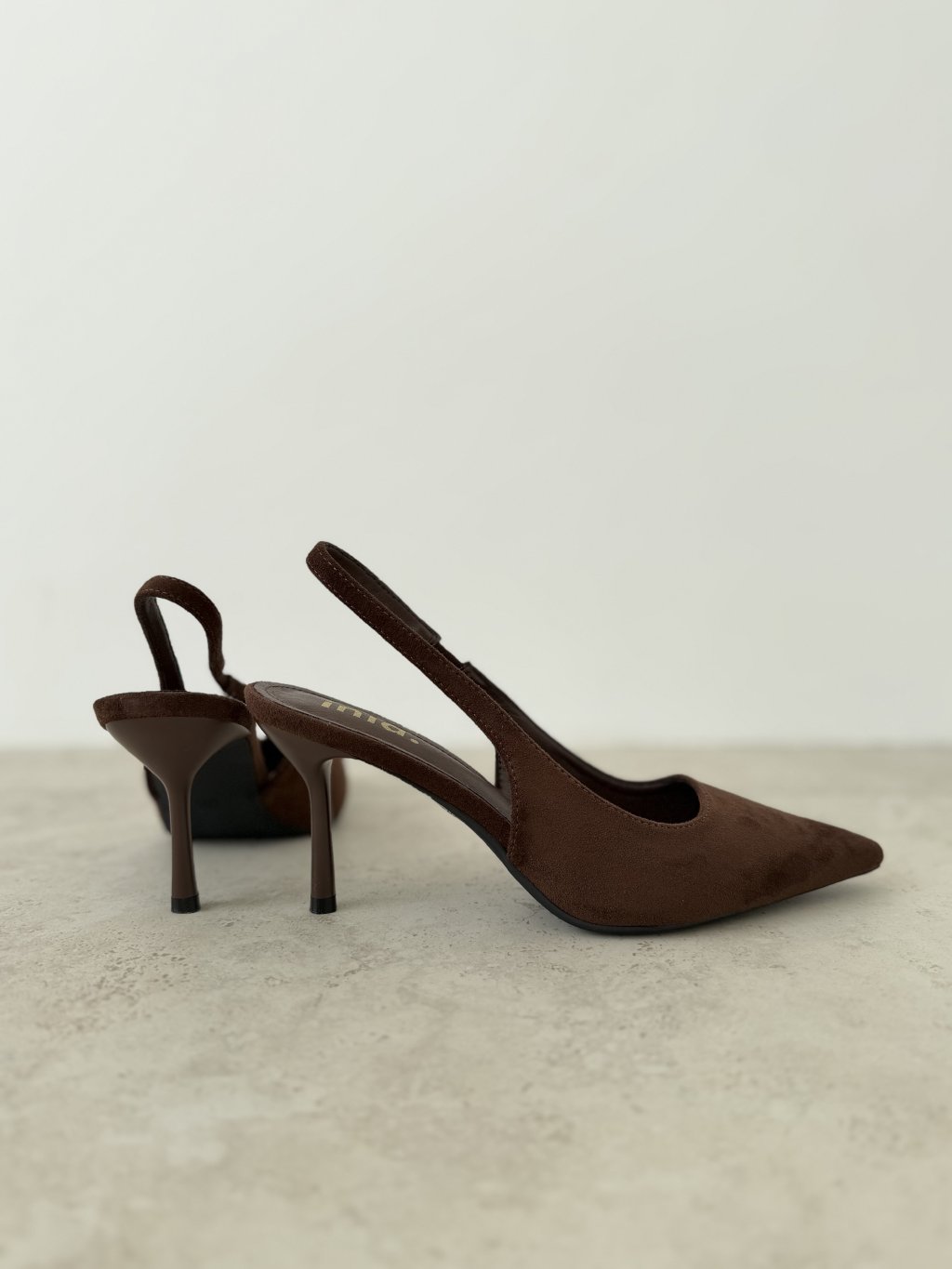 Elegant pumps with a feminine, sophisticated, and timeless look. This design stands out with its pointed toe, open back, and delicate slingback strap, giving it a light yet refined feel. The higher heel beautifully elongates the legs and adds a graceful, polished finish to the overall silhouette.
