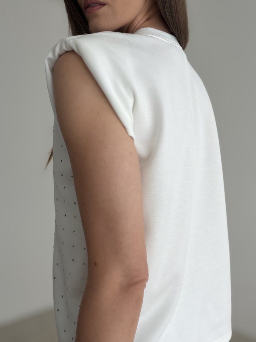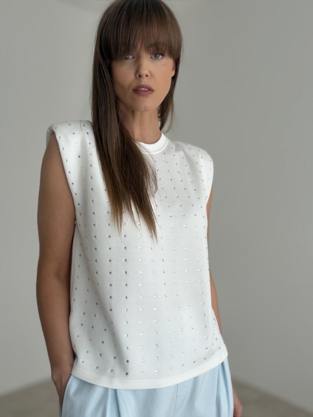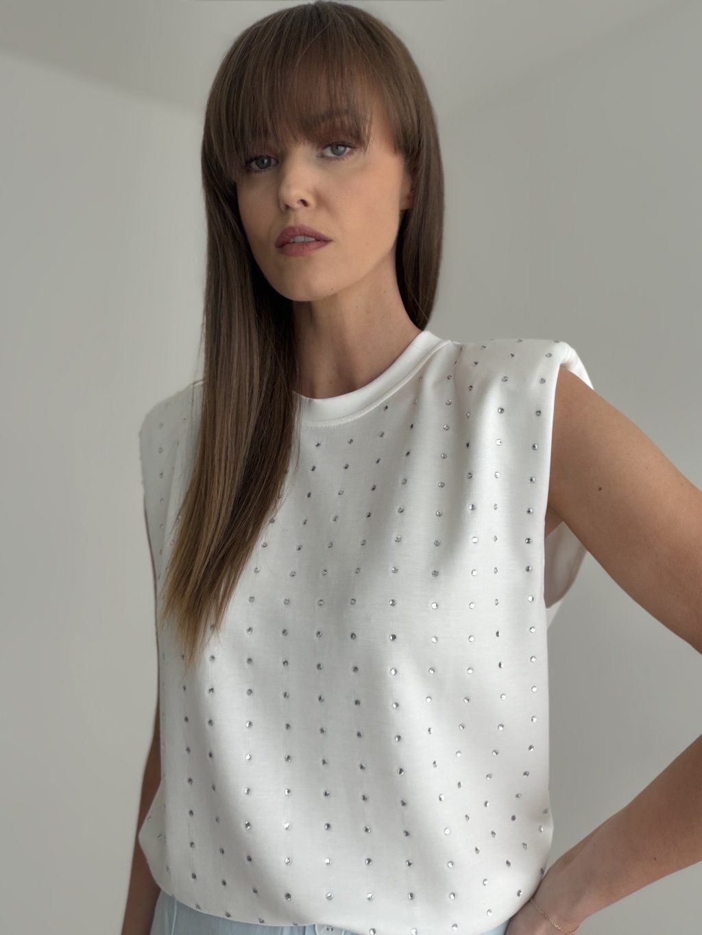A stylish top with decorative details that adds a subtle shine and an elegant touch to any outfit. Perfect for both everyday wear and more special occasions.