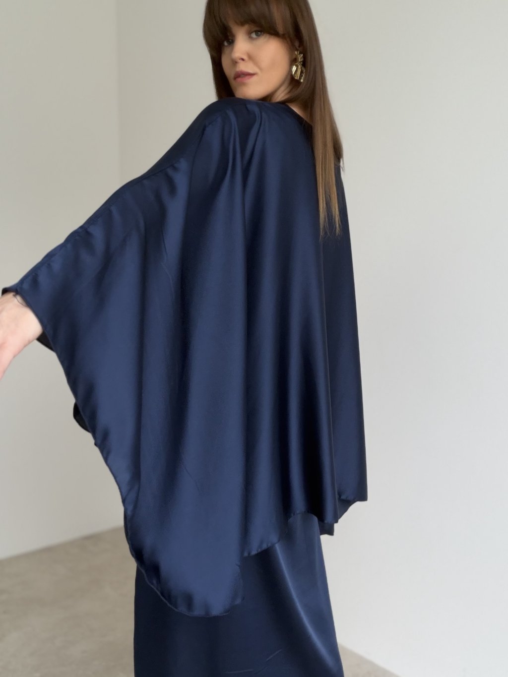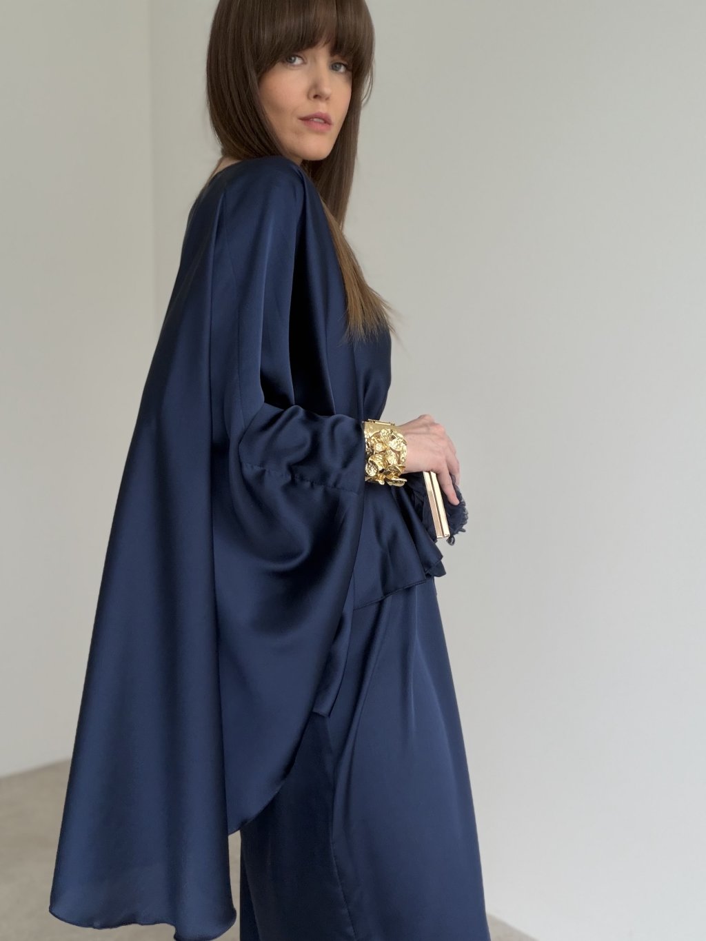 These satin dresses deliver a luxurious and sophisticated look with their beautifully flowing silhouette. The lightweight satin fabric catches the light effortlessly, creating a refined sheen with every movement. The loose, kaftan-inspired cut ensures exceptional comfort, while the waist tie allows you to shape the silhouette to your preference. The wide, draped sleeves add dramatic elegance and elevate the overall look. Perfect for weddings, evening events, celebrations or any occasion where you want to shine.