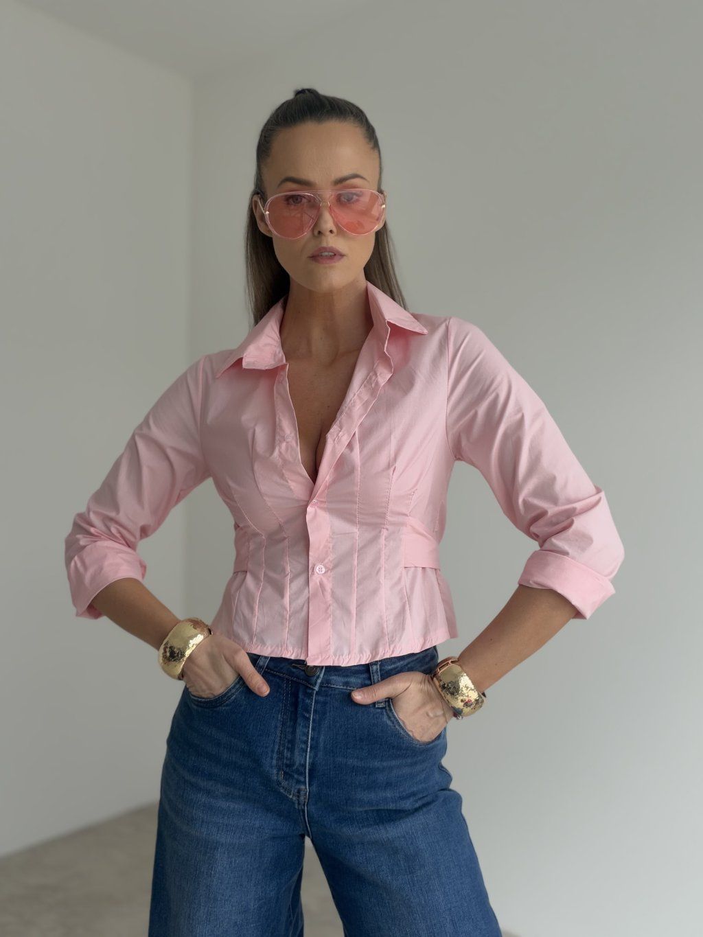 The shaping shirt is a stylish and feminine piece that beautifully highlights the figure. Its tailored cut and waist tie create an elegant and striking look, making it perfect for both everyday and dressier outfits.