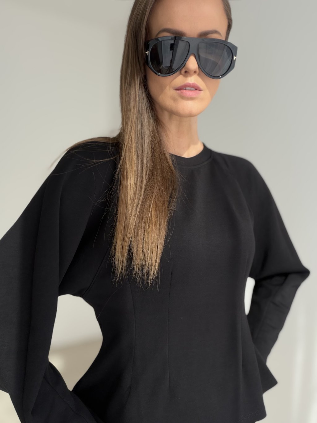 The minimalist design is complemented by long sleeves and clean lines that give the piece a modern and timeless appearance. The cut is designed to gently emphasize the waist and naturally follow the shape of the body. The back features subtle seams that add an interesting detail while enhancing the shaping effect.