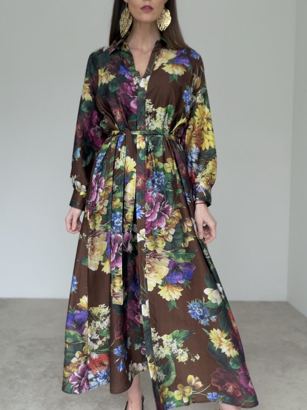 Romantic and elegant dress with a shirt-style upper part, waist tie and flowing cut. They look feminine, stylish and eye-catching. Perfect for celebrations, dinners and special occasions.