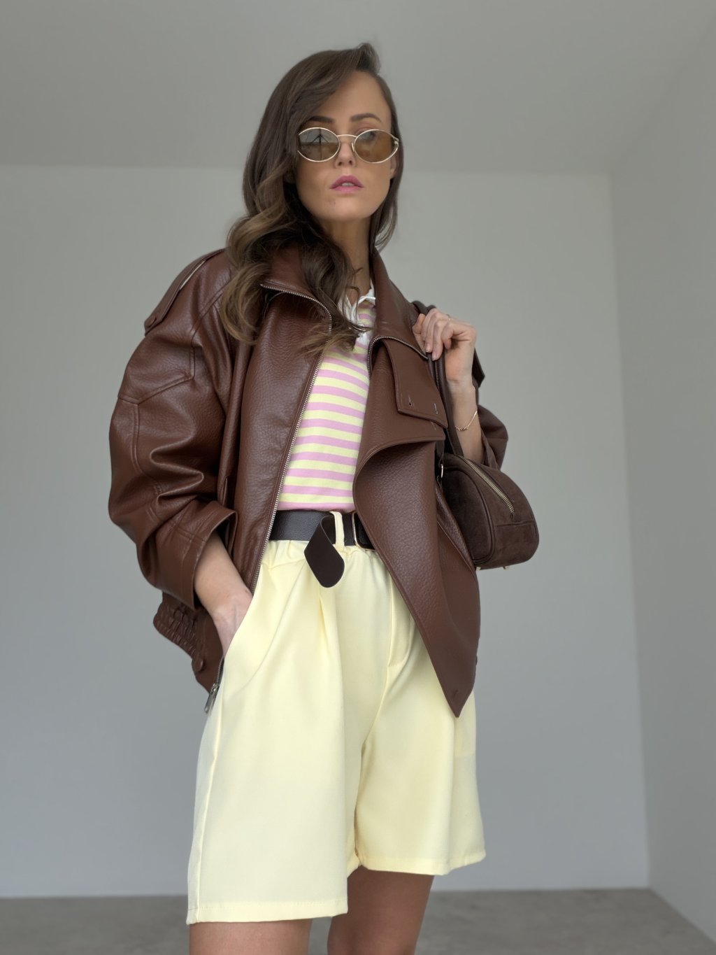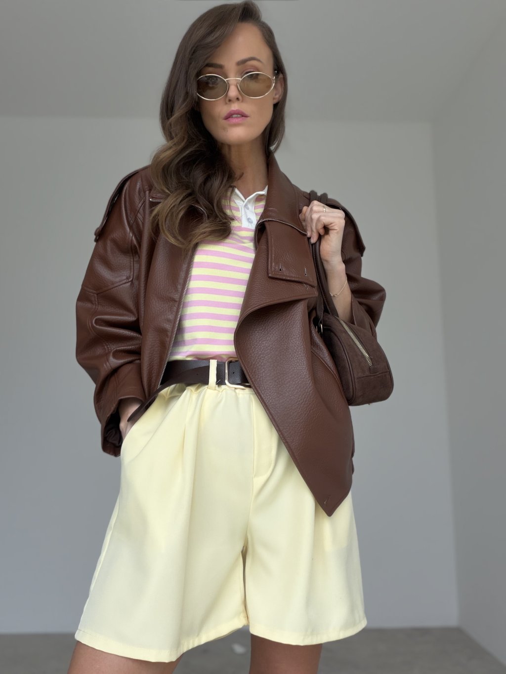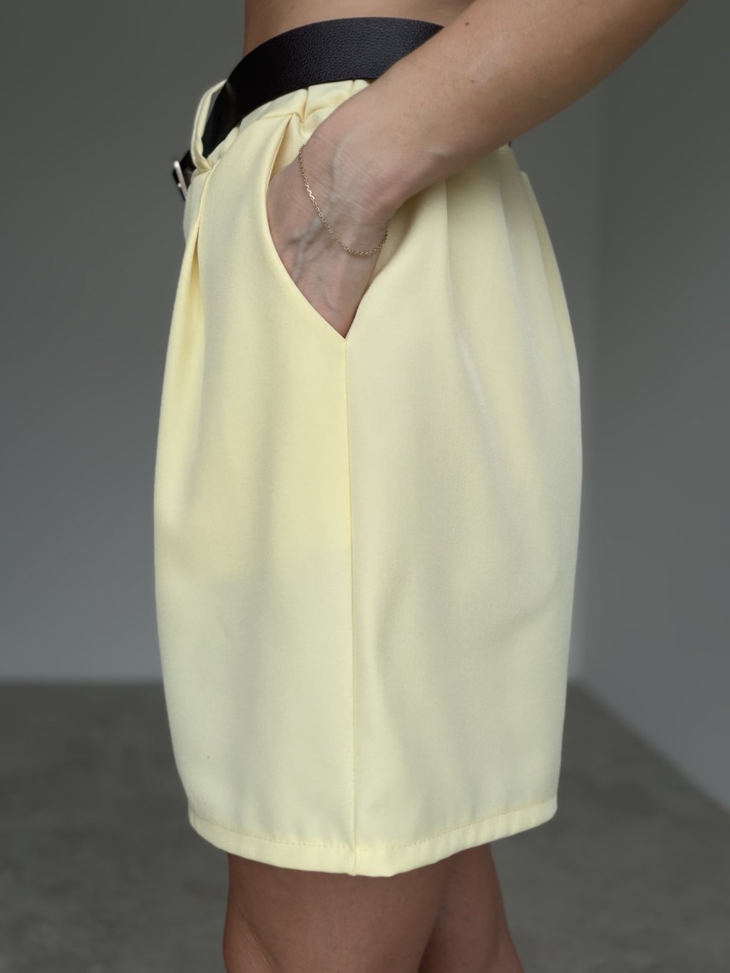 Elegant shorts with a belt are a stylish piece that perfectly complements both summer and transitional wardrobes. They feature a modern cut with a comfortable fit and create a polished yet feminine look. The belt helps define the waist and creates a flattering silhouette, making them a versatile choice for different occasions.