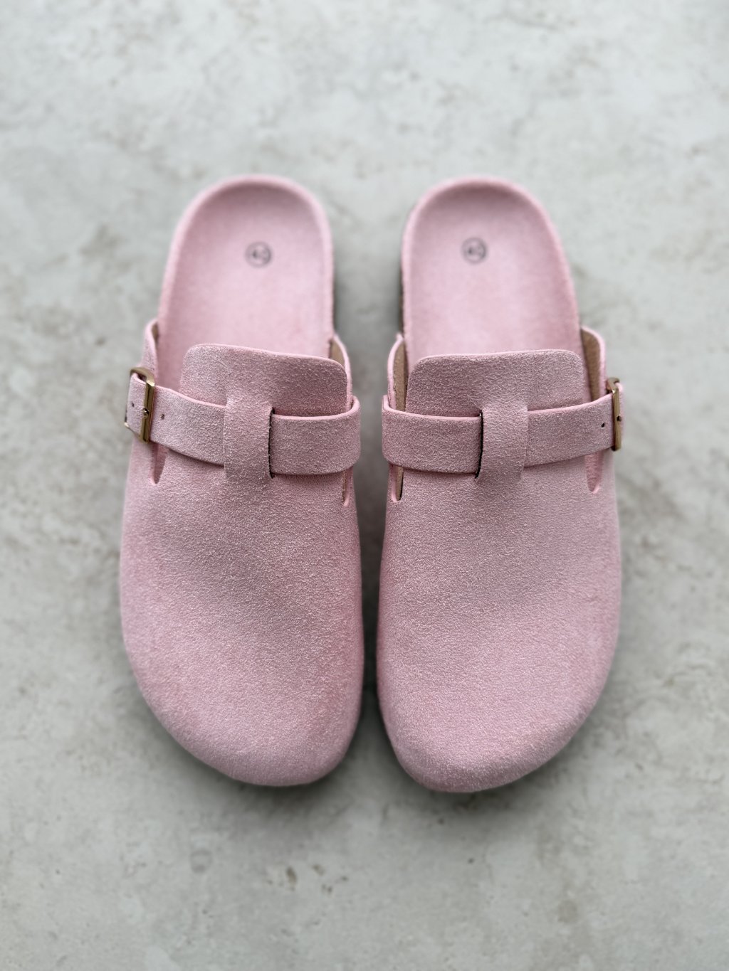 These slip-on mules are the perfect choice when you want all-day comfort with a polished, city-ready look. They feature a closed toe and a soft textured upper that feels elevated and easy to style with both everyday and vacation outfits. The side buckle allows you to adjust the fit to your instep, while the comfortable footbed and sturdy sole provide support for longer wear. We recommend choosing one size up for the best comfort. They pair beautifully with dresses, skirts and trousers—an effortless finishing touch that makes the whole outfit look put together.