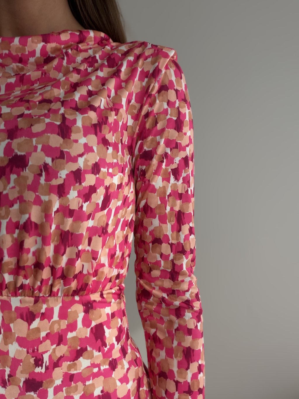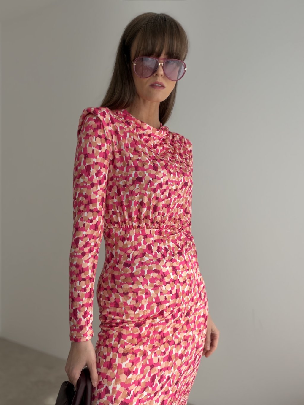 These stretch dresses with a bold print are made for days when you want to look polished while staying comfortable. The soft, stretchy fabric adapts to the body nicely and keeps its shape throughout the day. The silhouette is feminine and well-balanced: subtly structured shoulders create an elegant line, while gentle ruching at the waist enhances the shape and visually defines the waistline. Long sleeves and a below-the-knee length make them versatile for work, meetings, and evening plans. They’re also a great travel option—easy to pack and effortless to style in seconds.