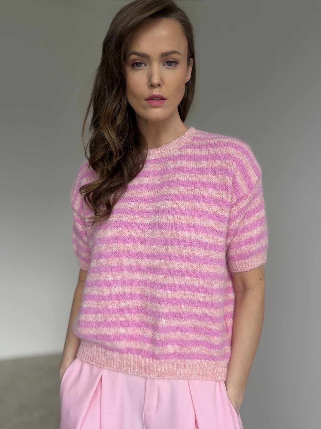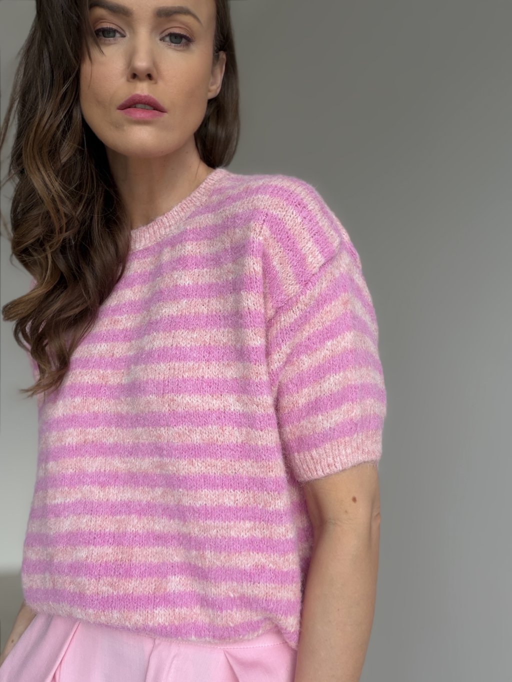 A striped knit pullover with short sleeves is a perfect piece for transitional weather and easy layering on cooler days. It feels soft and airy, giving a premium look at first glance. The relaxed fit sits comfortably on the body while keeping the outfit effortless and refined. Ribbed finishes at the neckline, sleeves, and hem help it hold its shape and create a polished silhouette. Style it with high-waisted trousers or a skirt—add accessories and you’re ready to go.