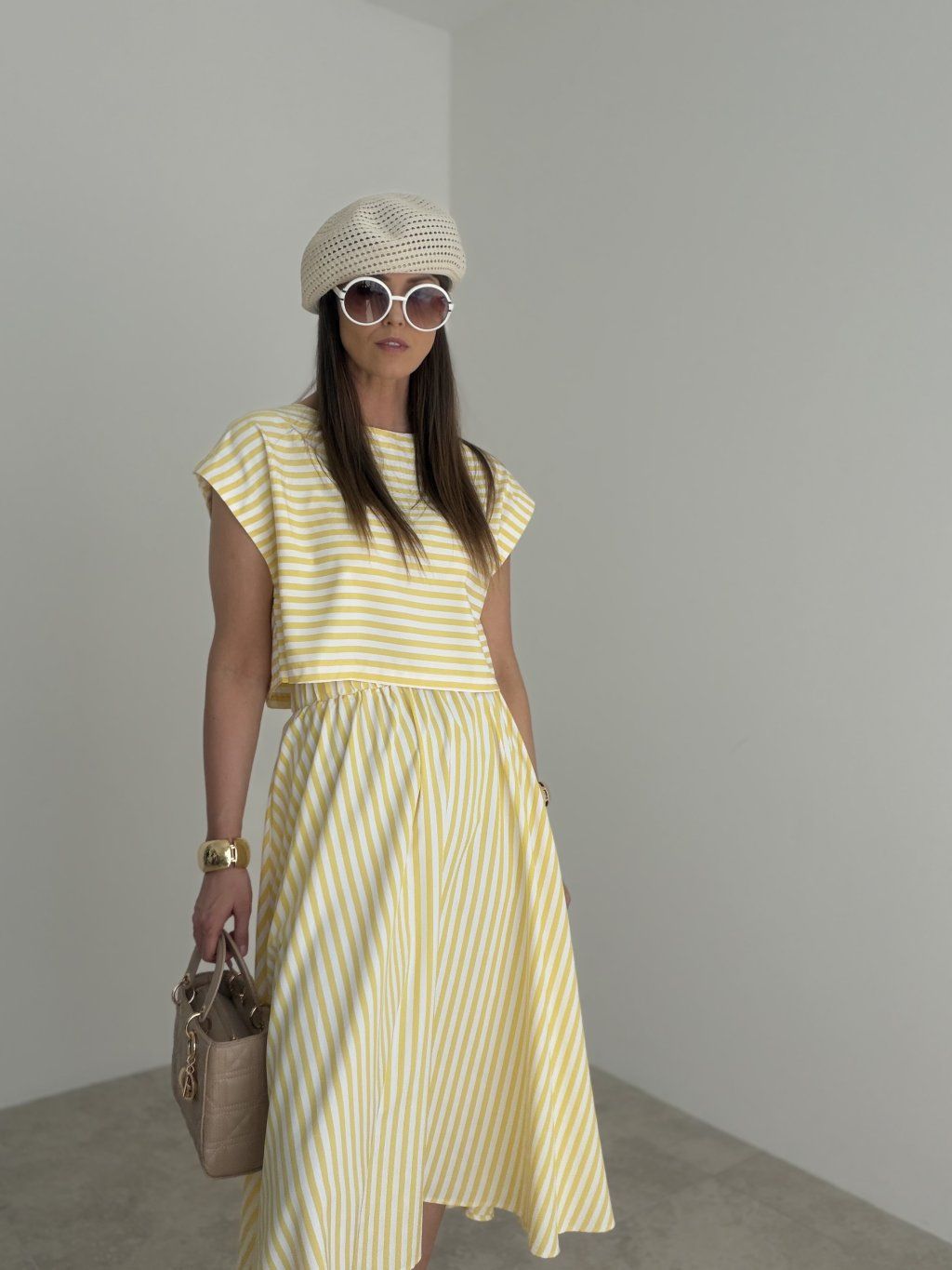A striped top is a fresh and stylish piece that beautifully complements summer and everyday outfits. It features a shorter relaxed fit, a round neckline and loose sleeves, giving it a modern, airy and comfortable feel. The simple design with a striped pattern adds a casual yet polished look.