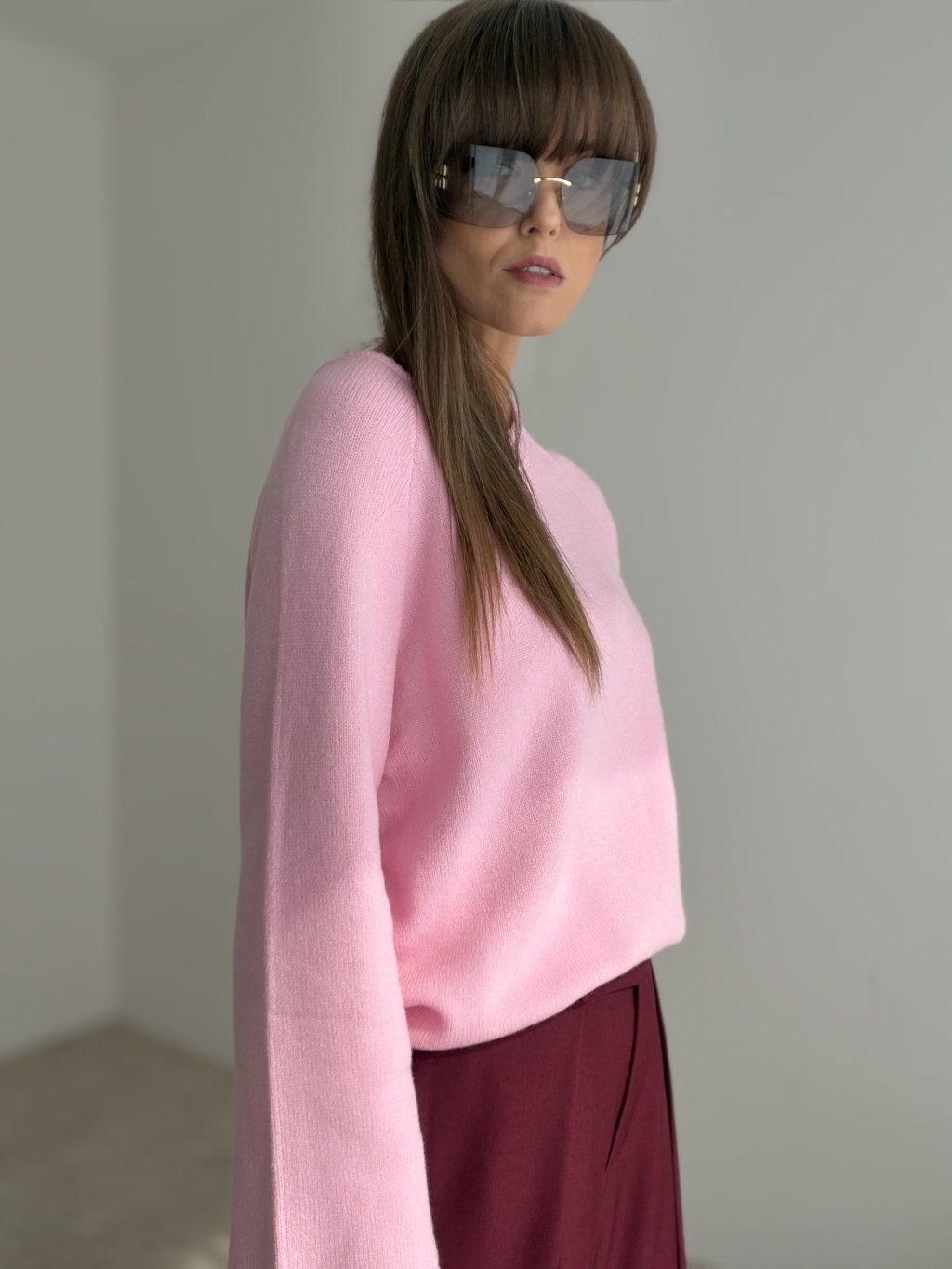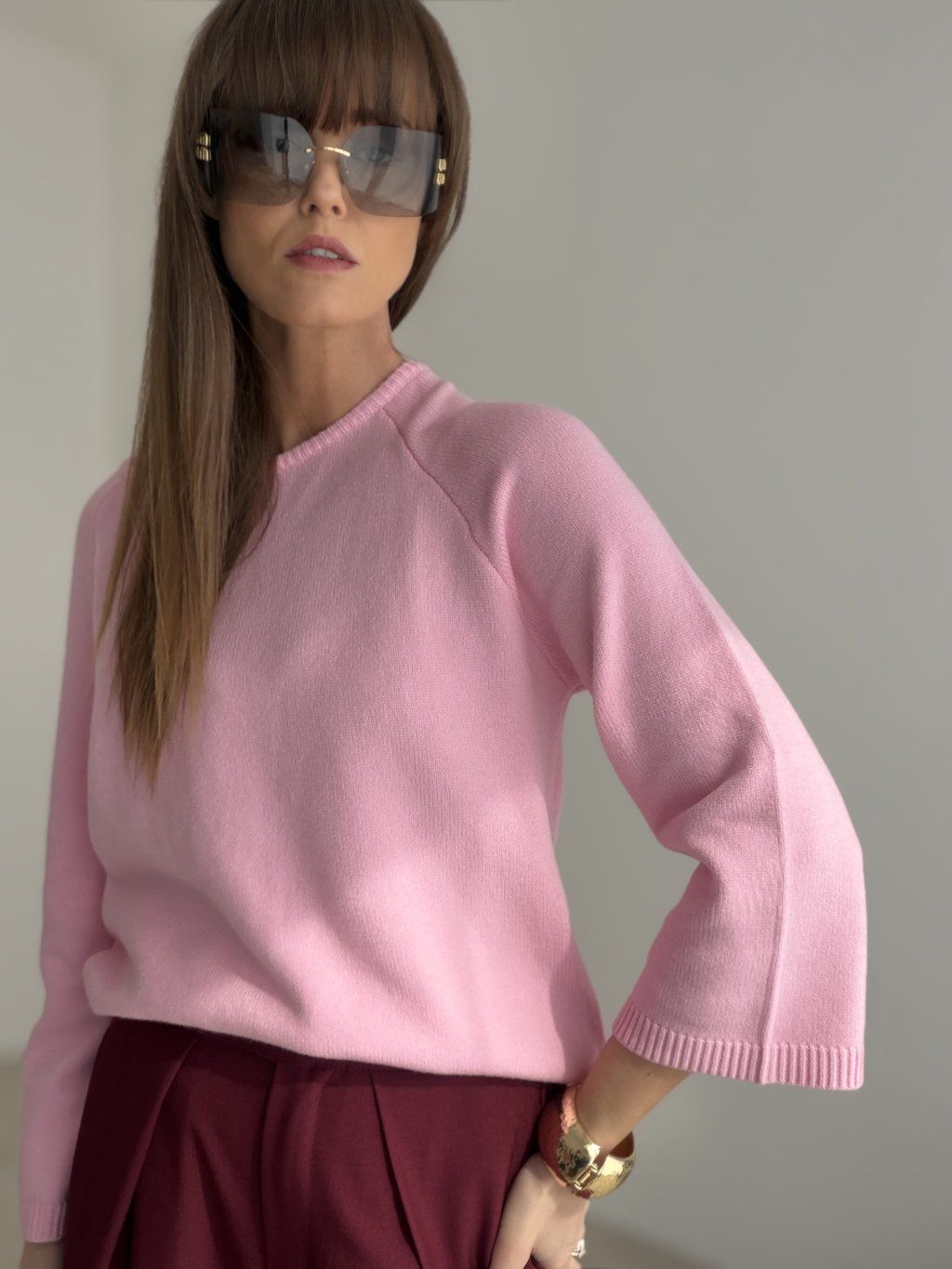 A soft knitted sweater with a clean design and three-quarter sleeves, perfect for everyday comfort and elegance. Its timeless shape makes it easy to style with both casual and more polished outfits.