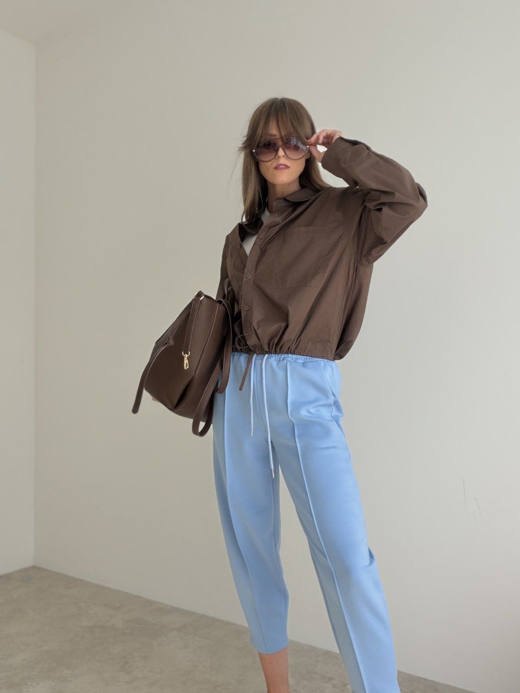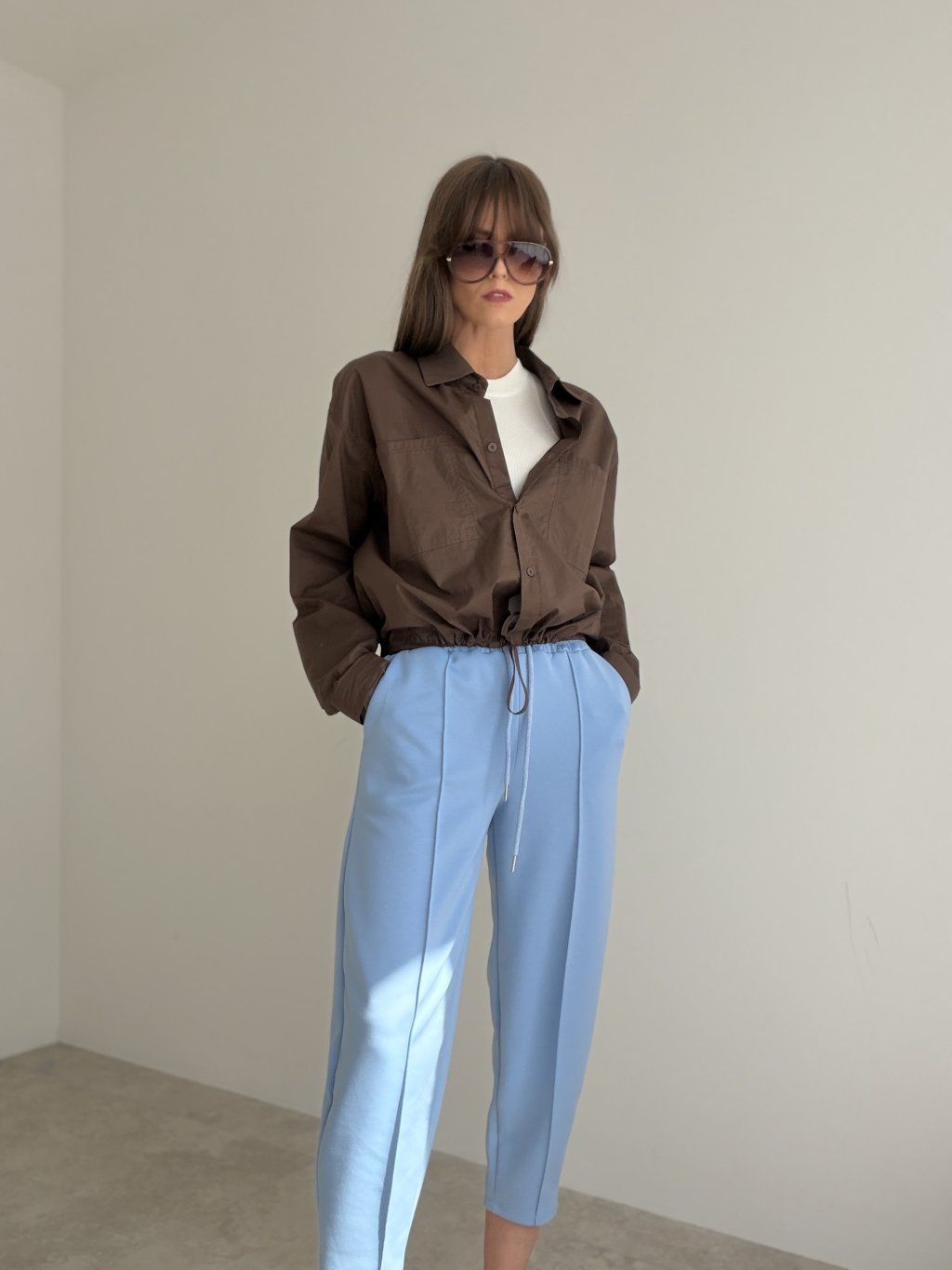 These comfortable sweatpants with a clean, polished look are an easy go-to for everyday wear and travelling. They feature an elastic waistband with an adjustable drawstring, so they sit nicely and adapt to your shape. The fit is relaxed, yet the refined lines keep the silhouette neat and modern rather than “at-home”. The ankle-length cut and slightly tapered legs create a flattering shape and pair effortlessly with sneakers and city footwear alike.