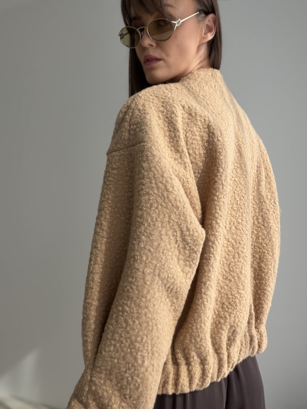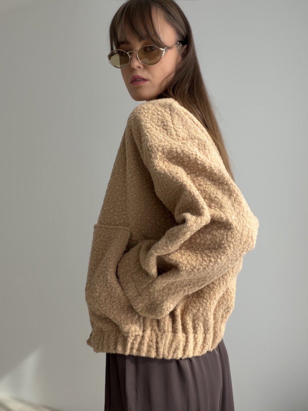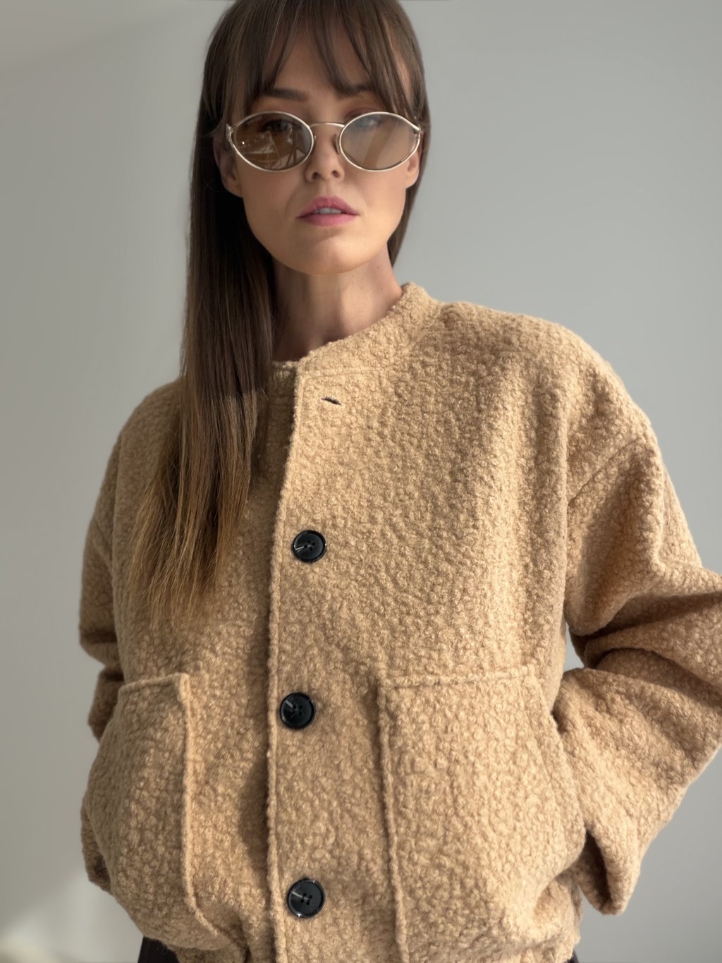 This jacket combines modern style with everyday comfort. The soft textured fabric gives the piece a distinctive look while remaining pleasant to wear. The relaxed fit creates a casual silhouette that works perfectly for everyday urban outfits.
