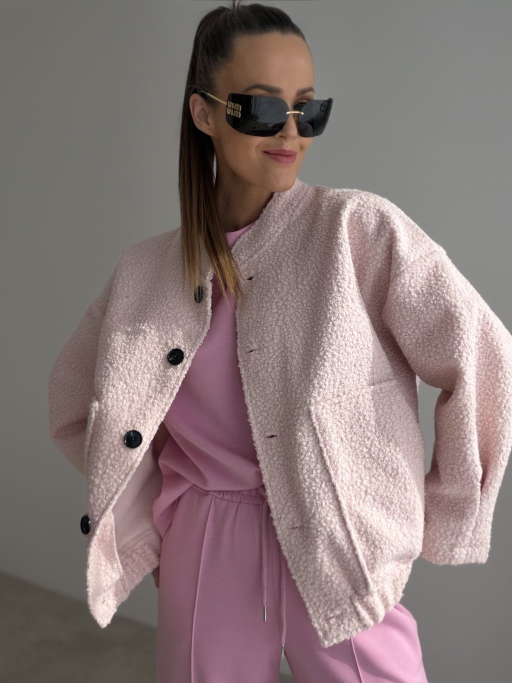 This jacket combines modern style with everyday comfort. The soft textured fabric gives the piece a distinctive look while remaining pleasant to wear. The relaxed fit creates a casual silhouette that works perfectly for everyday urban outfits.