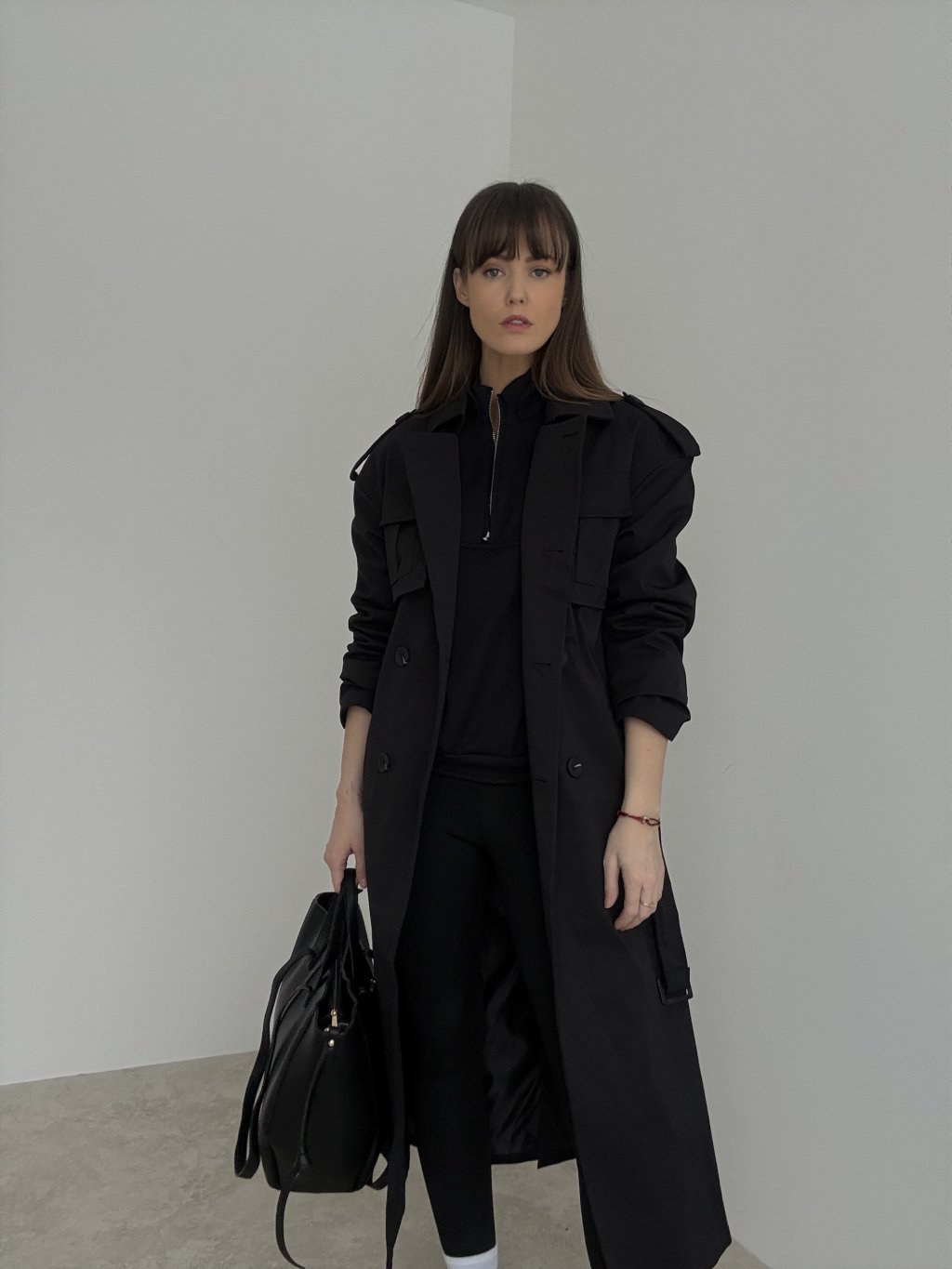 This trench coat is a statement, timeless piece that instantly elevates any outfit with a clean, city-ready look. It features a longer silhouette with modern, well-defined details that feel both practical and refined. The waist tie allows you to adjust the shape easily—wear it open for a relaxed vibe or cinch it for a more structured, flattering fit. Functional pockets and shoulder detailing add character and definition, giving the coat a strong, polished finish. Perfect for transitional seasons when you want to look elegant while staying comfortable. Style it with jeans, dresses, or a minimal matching set for an effortlessly chic outfit.