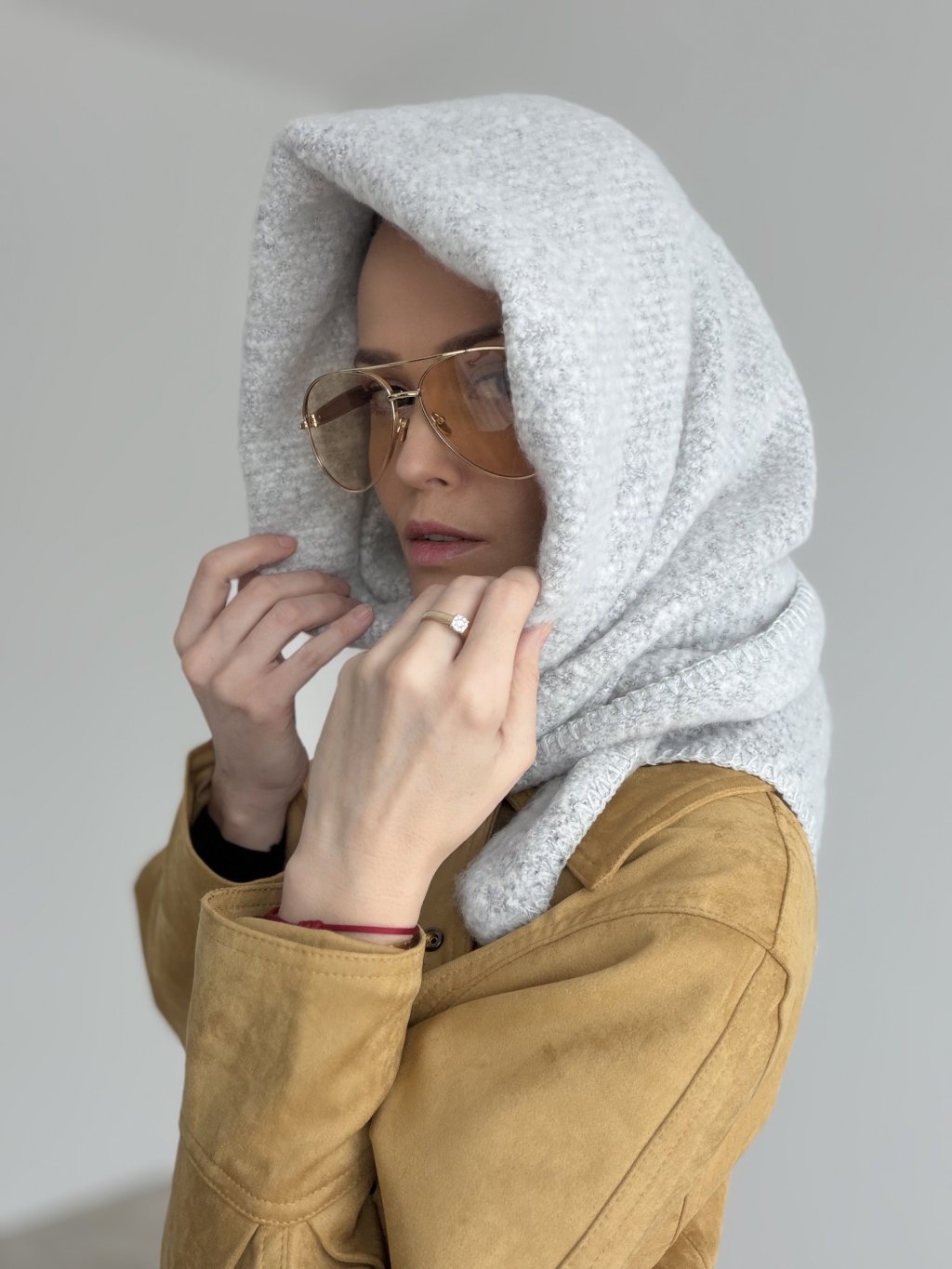 This warm scarf with a softly textured finish is a perfect accessory for colder days. Its generous size allows you to wear it traditionally around the neck, drape it over the shoulders like a wrap, or style it into a modern hood effect that also protects from wind. The material feels soft and comfortable, adapting easily when tying or layering. It elevates coats, jackets, and more polished looks, giving you an effortless, refined finish.