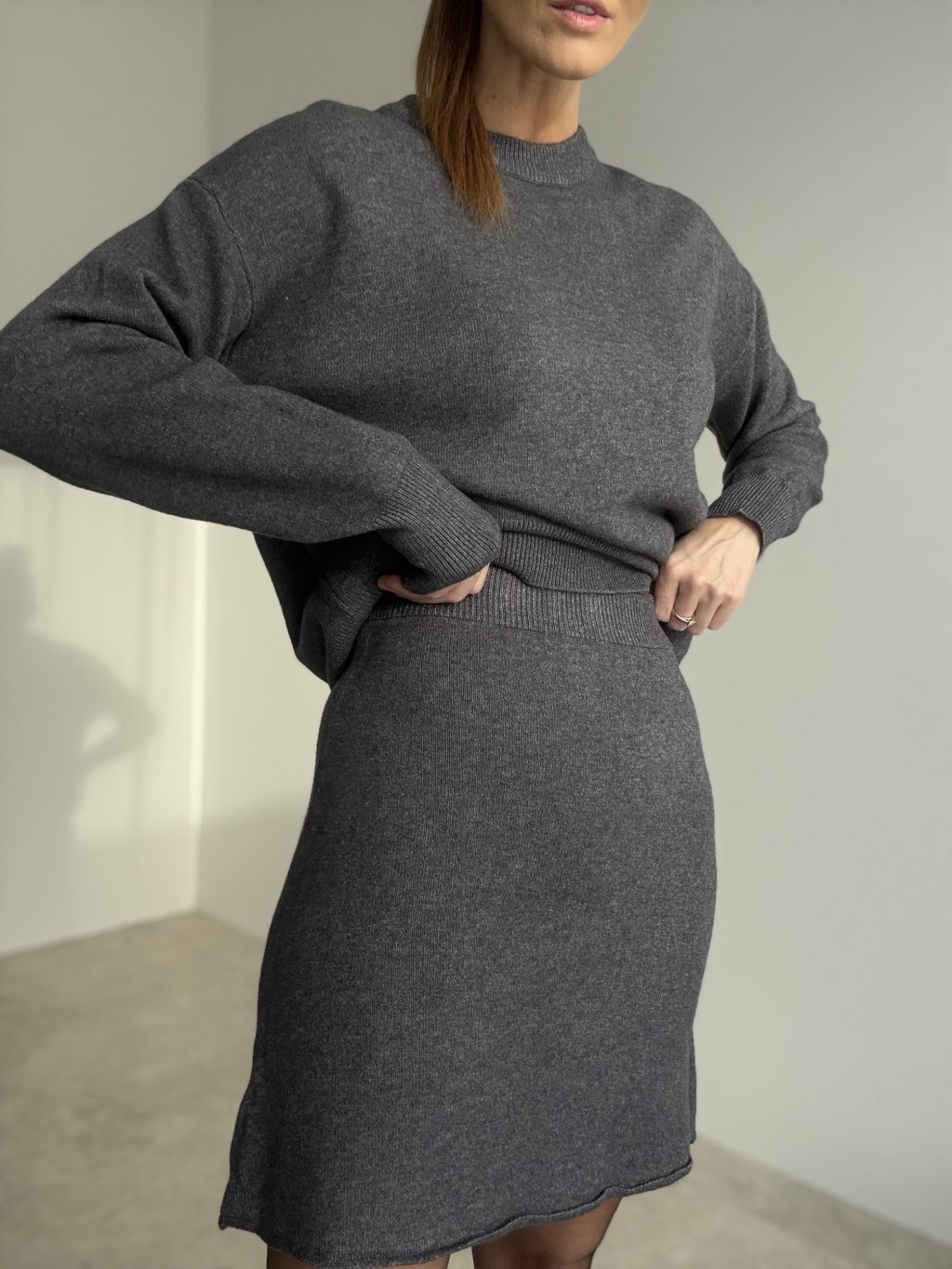 An elegant two-piece set featuring a relaxed sweatshirt and a comfortable skirt with an elastic waistband. The soft, pleasant fabric ensures all-day comfort, while the simple cut creates a stylish and timeless look. Perfect for everyday wear, yet easy to dress up for occasions when you want to look polished and modern.
