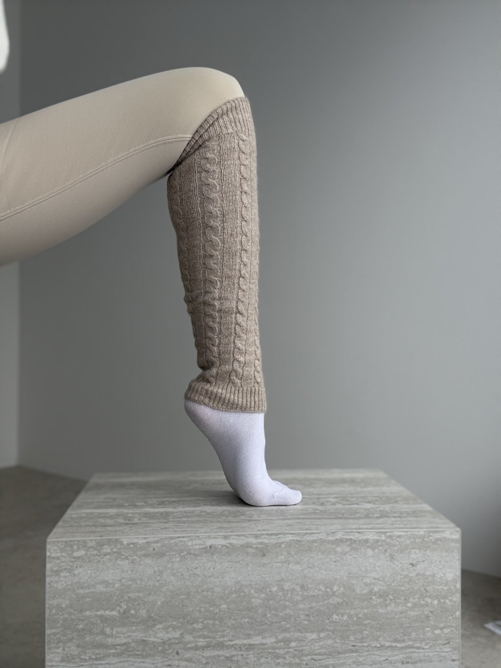 Knitted leg warmers with a timeless cable pattern, designed to keep your legs warm and add a cozy touch to any outfit. The soft, stretchy knit gently hugs the calves without feeling tight, and can be worn pulled up towards the knee or scrunched down around the ankles. They look great with leggings, tights or slim trousers and pair perfectly with boots, sneakers or comfy home slippers. An ideal accessory for cold days, city walks, travelling or relaxing at home.