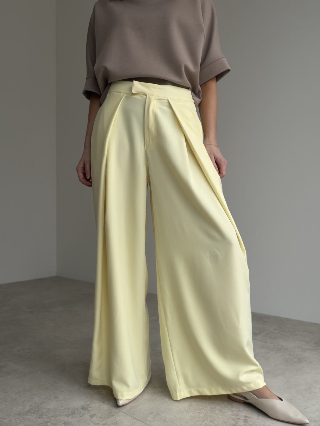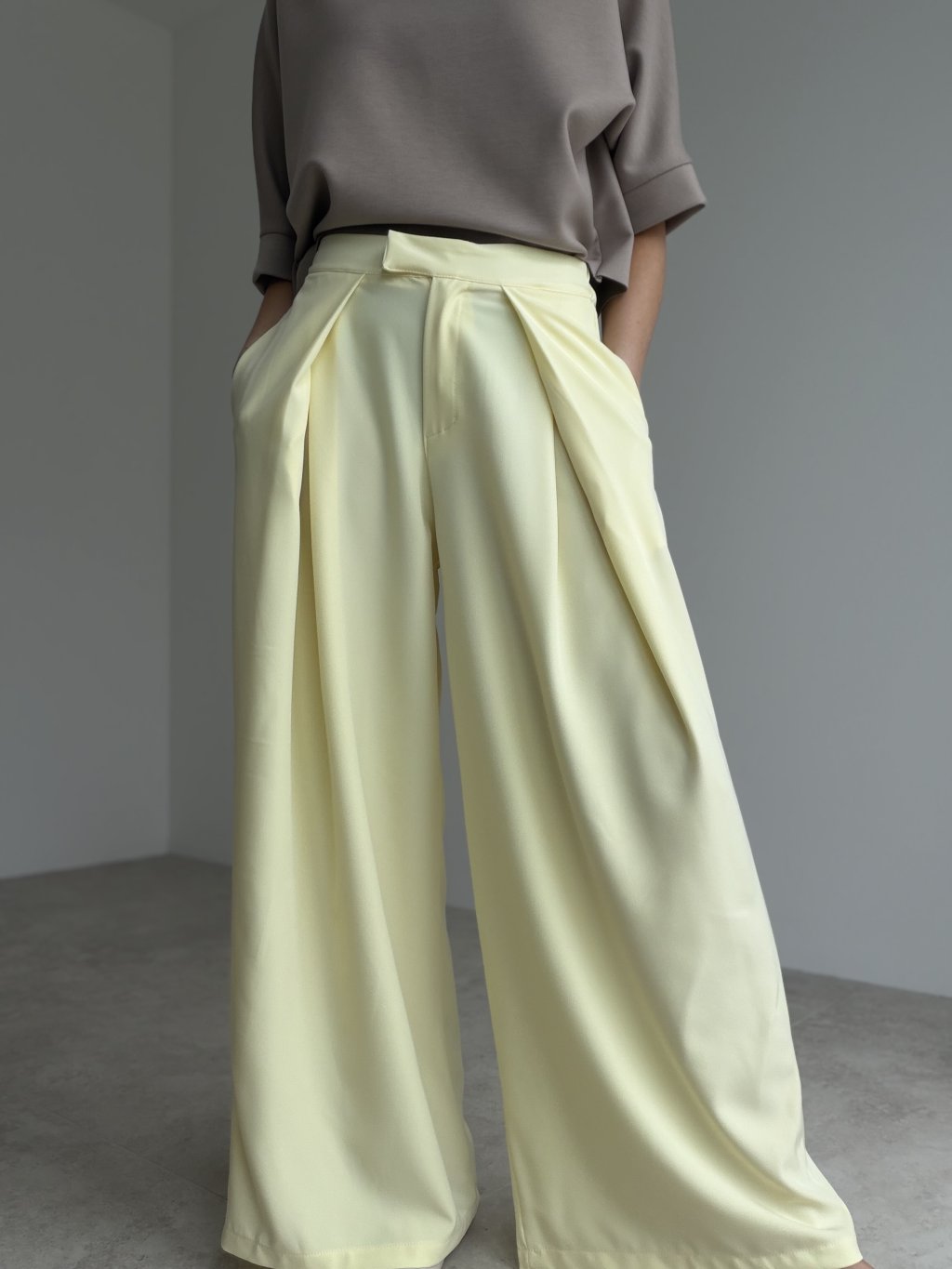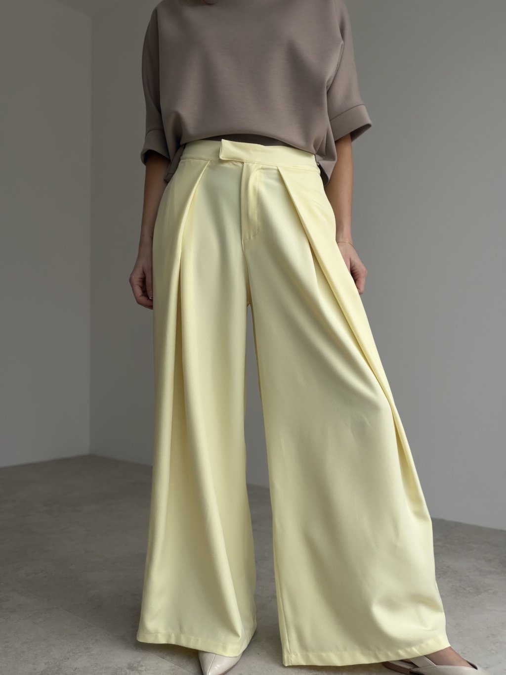 Elegant wide-leg trousers are a perfect choice for women who love comfort while keeping a polished and feminine look. The front has a refined appearance thanks to clean lines and delicate pleat detailing at the waist, creating a beautiful flowing effect when walking. The cut visually elongates the silhouette and adds a sophisticated touch to any outfit.
