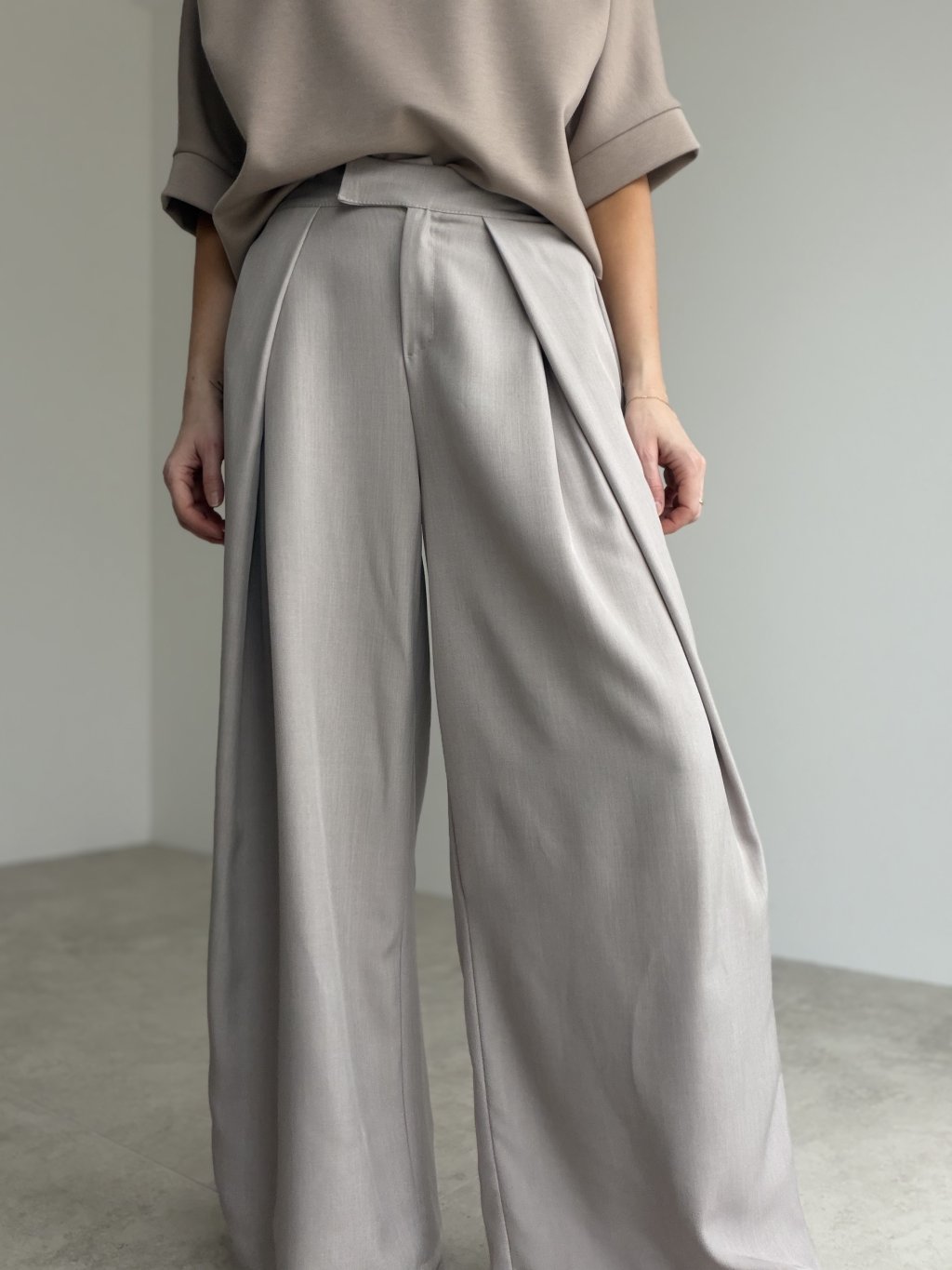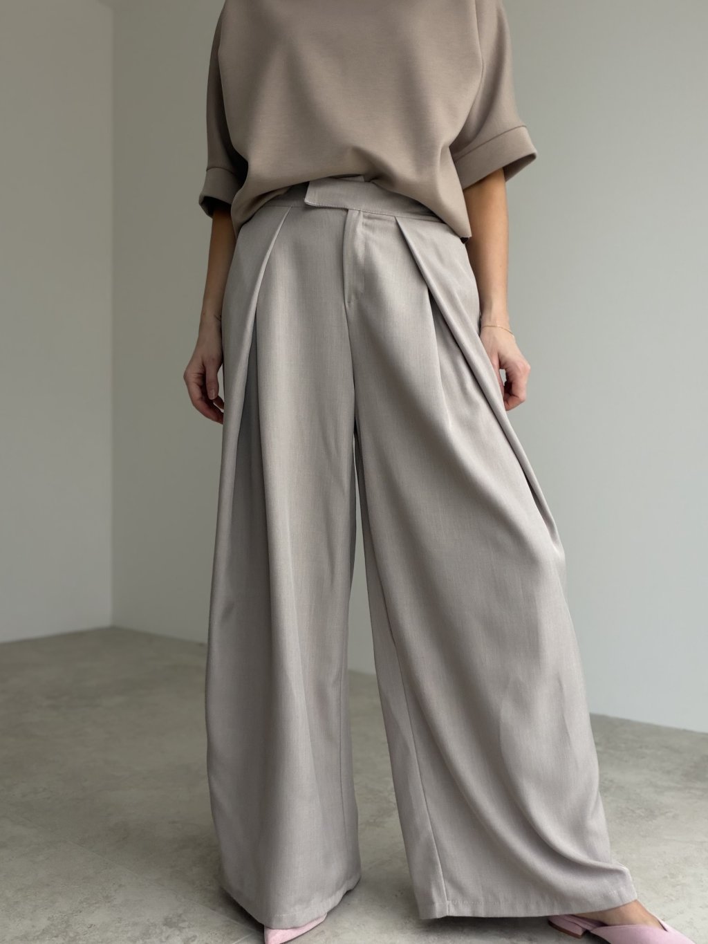 Elegant wide-leg trousers are a perfect choice for women who love comfort while keeping a polished and feminine look. The front has a refined appearance thanks to clean lines and delicate pleat detailing at the waist, creating a beautiful flowing effect when walking. The cut visually elongates the silhouette and adds a sophisticated touch to any outfit.