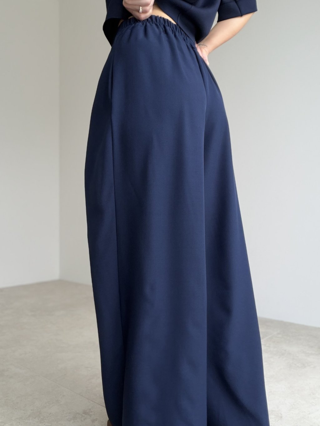 Elegant wide-leg trousers are a perfect choice for women who love comfort while keeping a polished and feminine look. The front has a refined appearance thanks to clean lines and delicate pleat detailing at the waist, creating a beautiful flowing effect when walking. The cut visually elongates the silhouette and adds a sophisticated touch to any outfit.