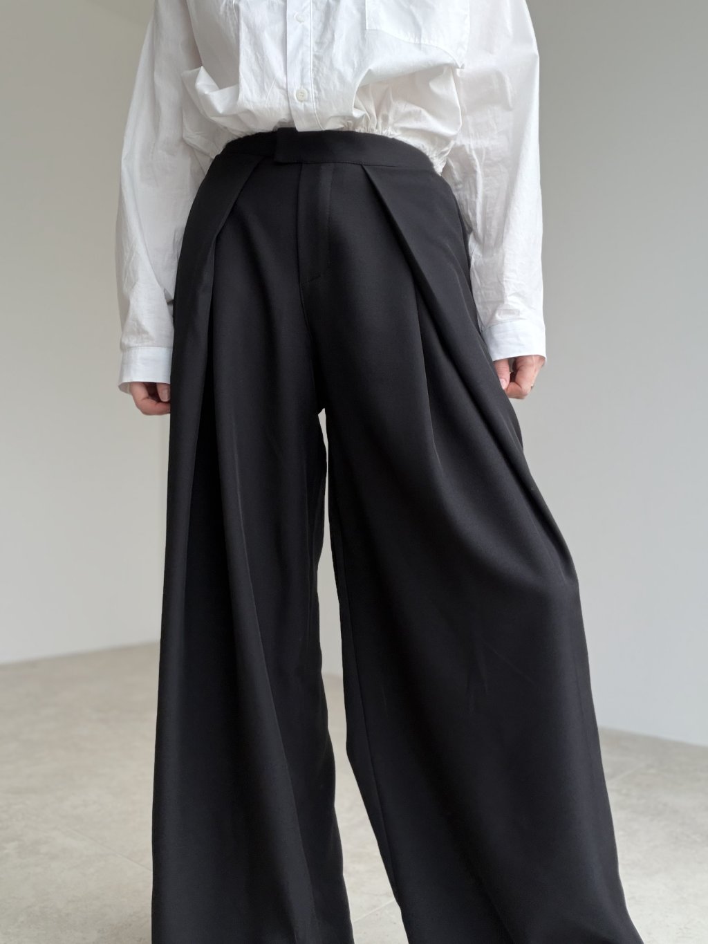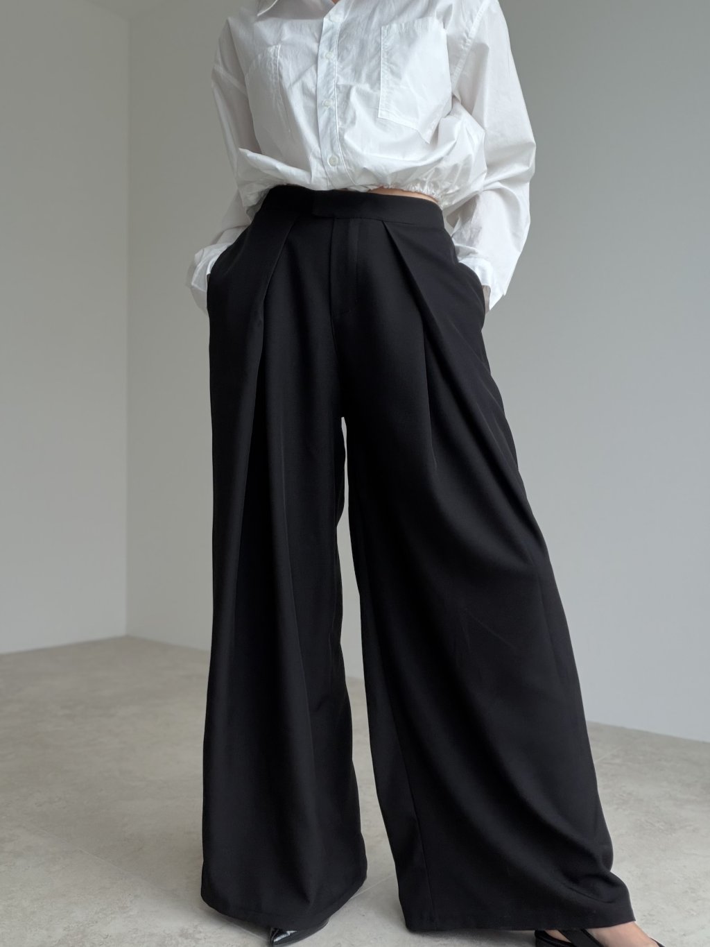 Elegant wide-leg trousers are a perfect choice for women who love comfort while keeping a polished and feminine look. The front has a refined appearance thanks to clean lines and delicate pleat detailing at the waist, creating a beautiful flowing effect when walking. The cut visually elongates the silhouette and adds a sophisticated touch to any outfit.