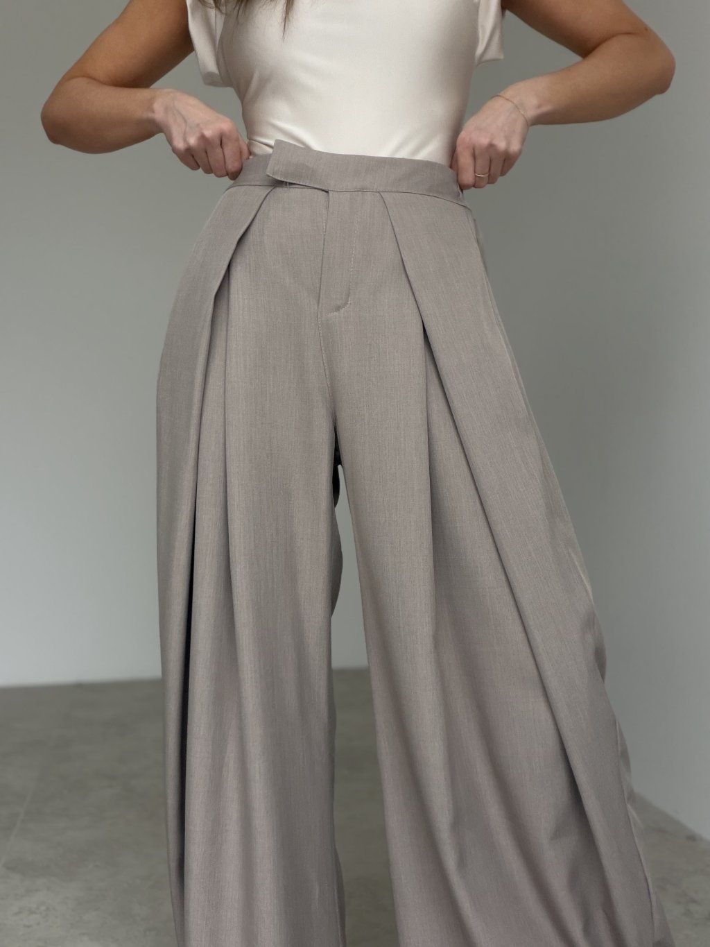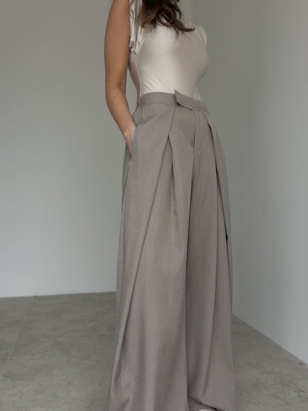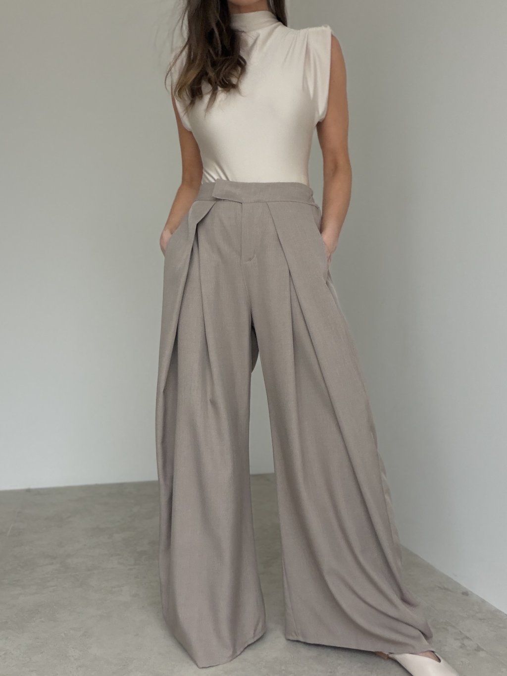 These wide-leg trousers are a statement yet timeless piece for polished, comfortable styling. Designed with a high waist and refined front pleats, they create a flattering silhouette with a tailored finish. The loose, wide leg feels airy and moves beautifully, while visually elongating the legs. Their elegant cut makes them easy to dress up or down—perfect for work, meetings or evening looks, simply by switching the top and accessories. Pair them with a tucked-in shirt, a sleek knit, or a blazer for a sophisticated outfit.