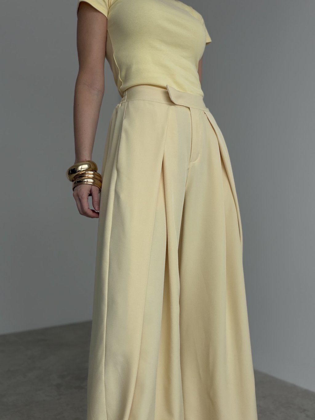 These wide-leg trousers are a statement yet timeless piece for polished, comfortable styling. Designed with a high waist and refined front pleats, they create a flattering silhouette with a tailored finish. The loose, wide leg feels airy and moves beautifully, while visually elongating the legs. Their elegant cut makes them easy to dress up or down—perfect for work, meetings or evening looks, simply by switching the top and accessories. Pair them with a tucked-in shirt, a sleek knit, or a blazer for a sophisticated outfit.