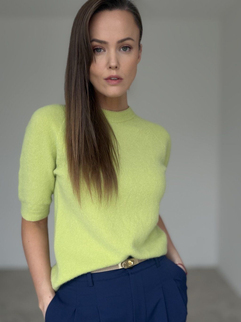 A soft and elegant piece with short sleeves and a clean silhouette that feels feminine, modern, and refined. Easy to style for both everyday and more polished outfits.