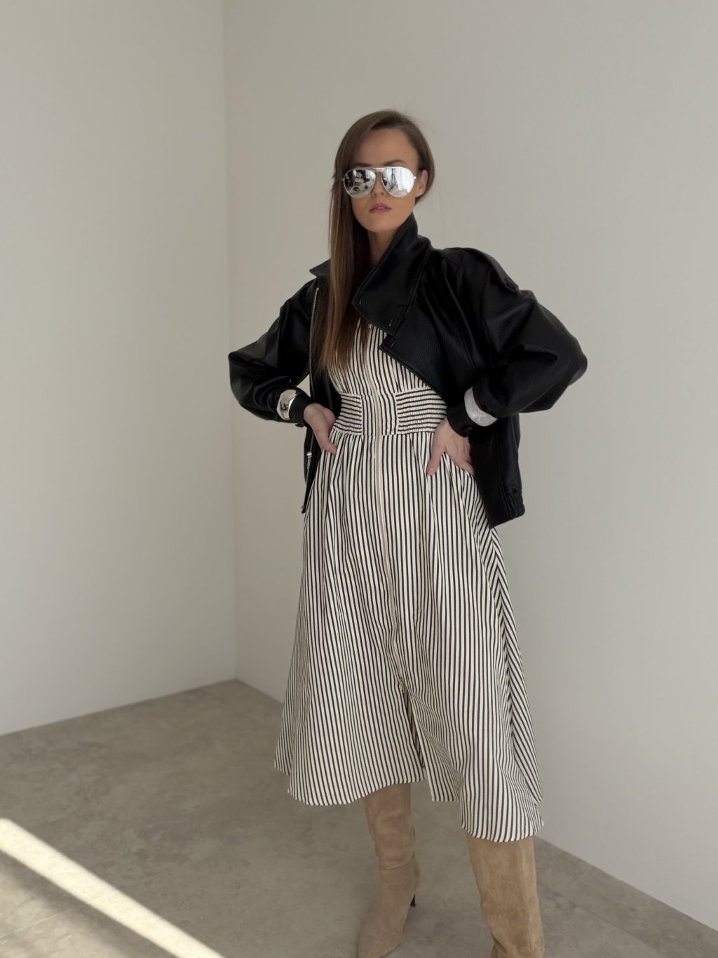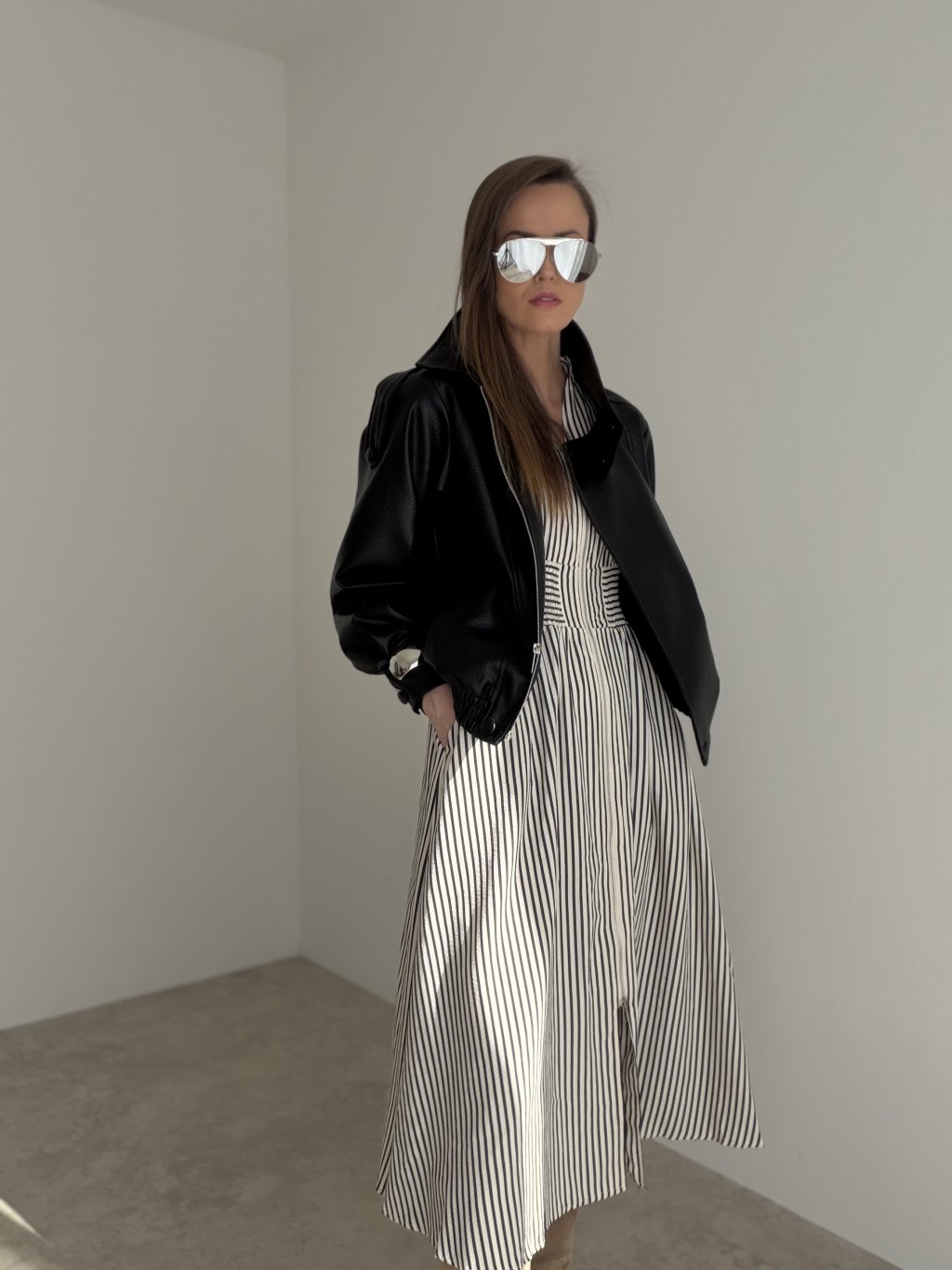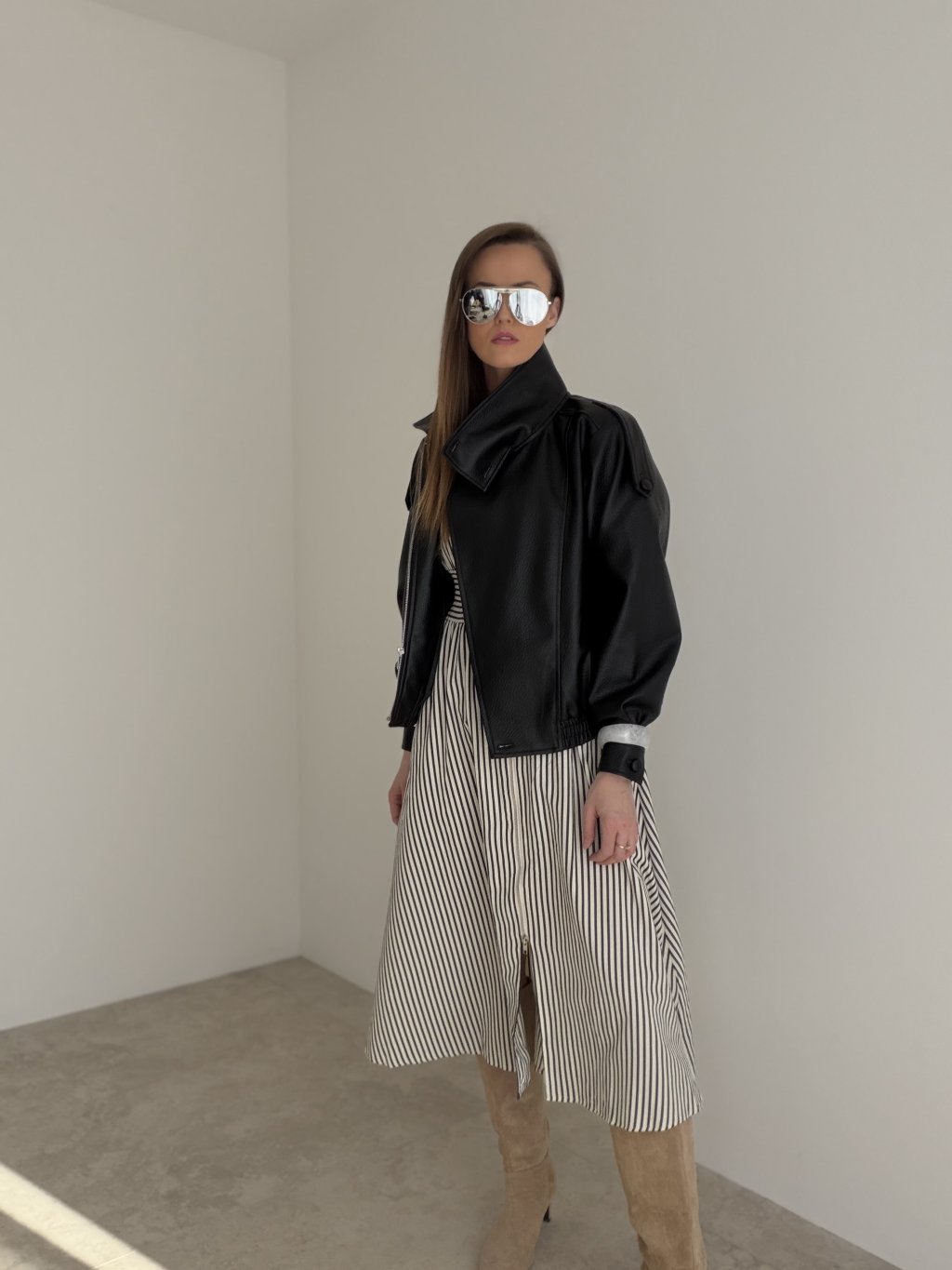 This dress is a great choice for everyday wear, city outings, meetings, or occasions when you want to look elegant without feeling overdressed. It pairs beautifully with boots, heels and delicate accessories, always creating a thoughtful outfit with a timeless touch. It is the perfect piece for women who love combining comfort, femininity and stylish details.