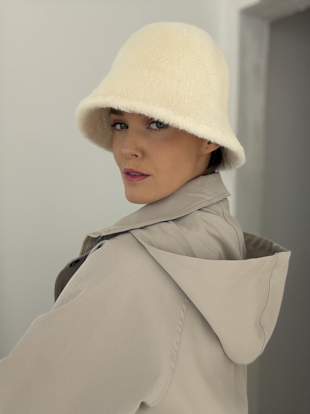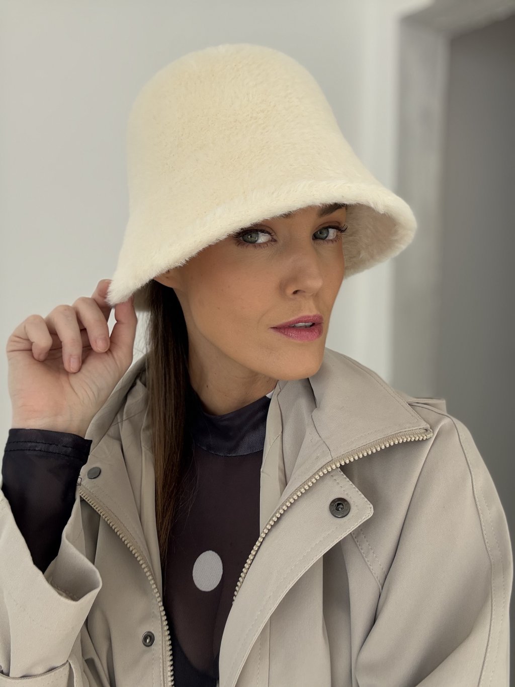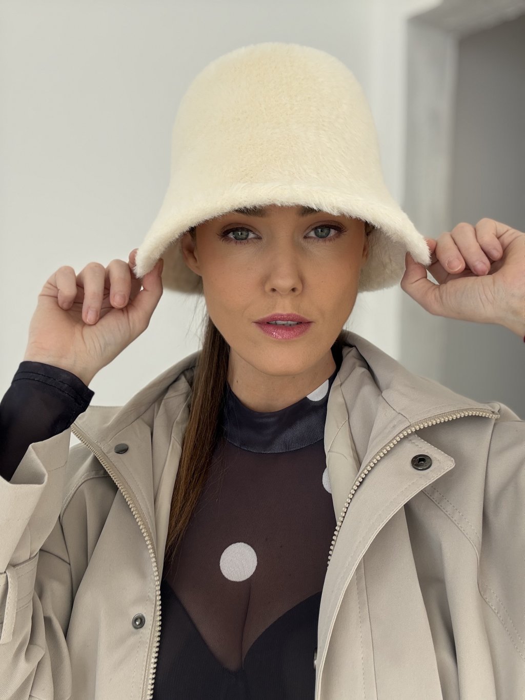Fluffy klobúk s mäkkým hrejivým povrchom a trendovou širšou strieškou. Ideálny doplnok ku kabátom aj bundám.
