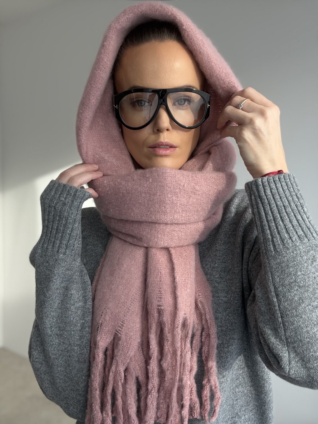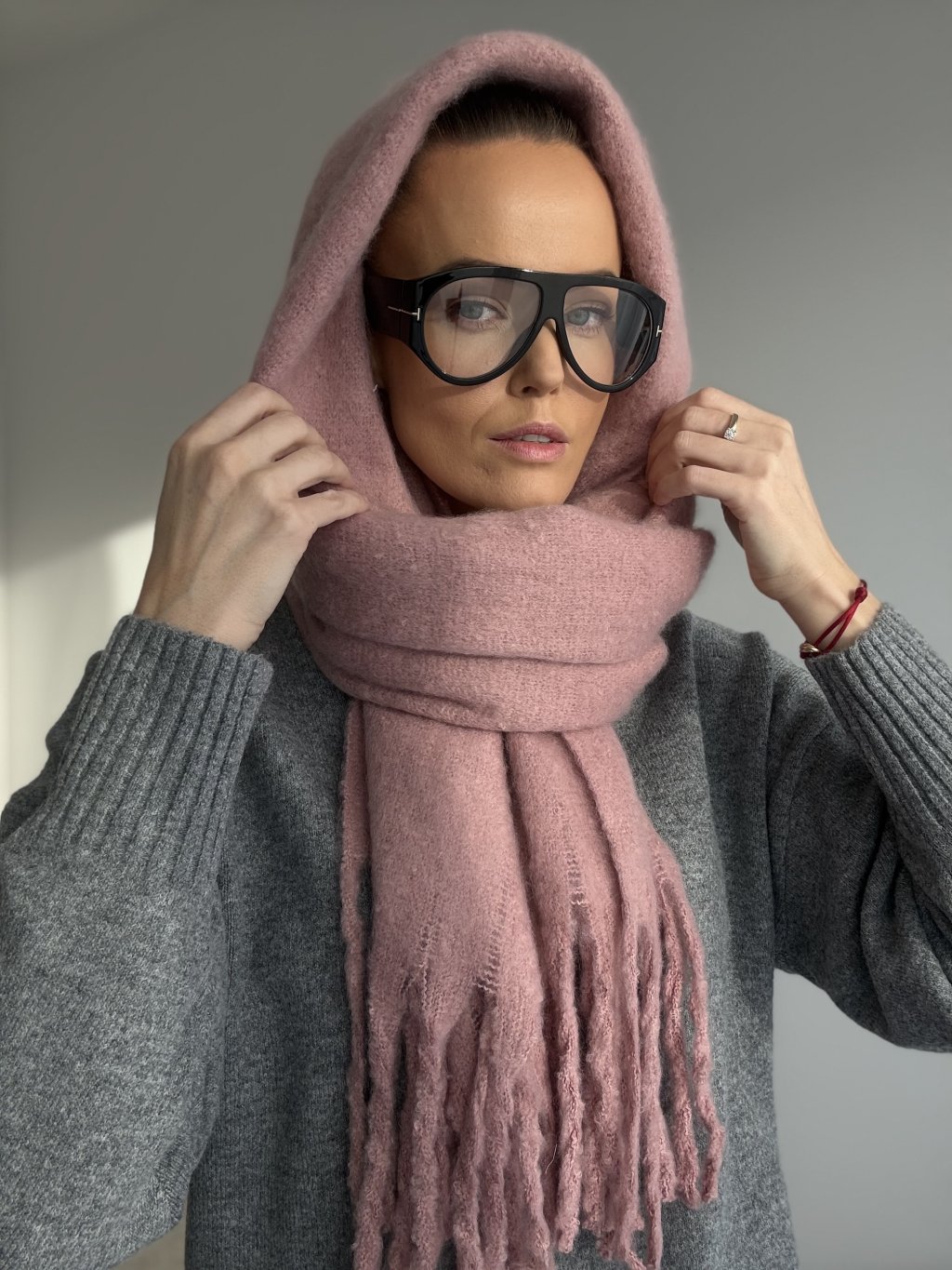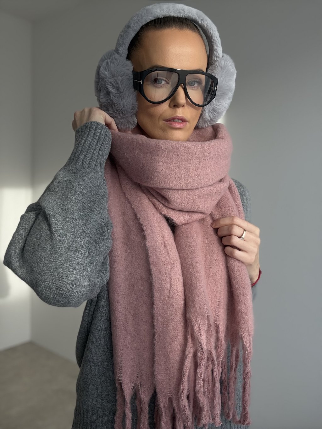 Mäkký, hrubší šál so strapcami, ktorý príjemne zahreje, dá sa nosiť aj ako pléd cez ramená a perfektne doplní zimné aj prechodné outfity.