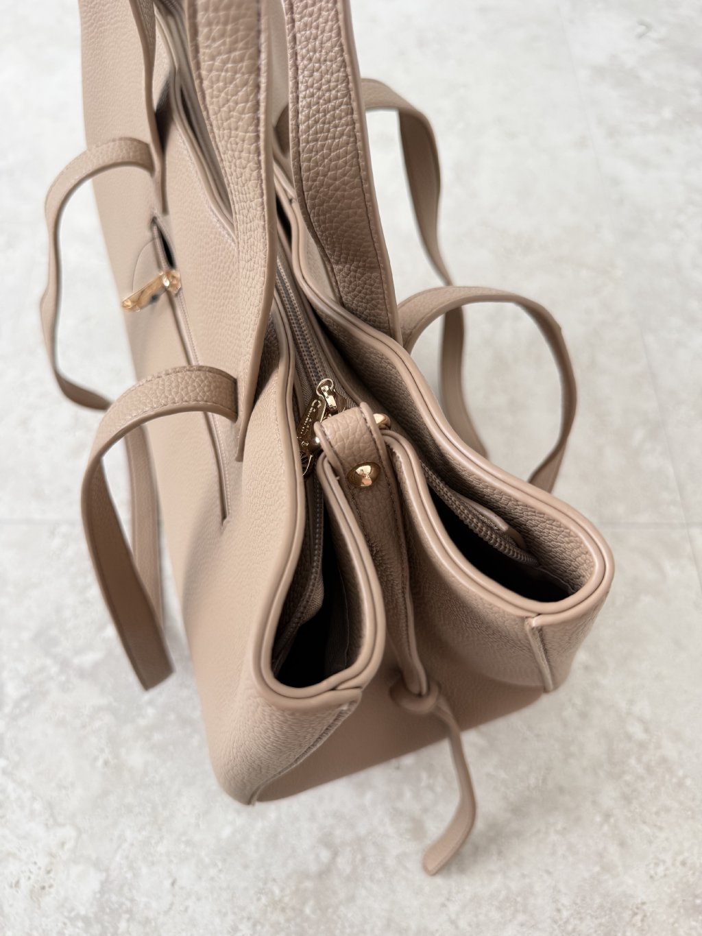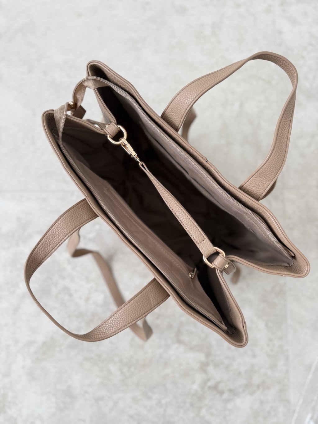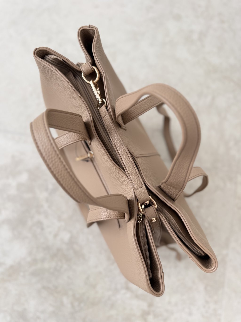 Elegantná kabelka s pevnejším tvarom a čistými líniami, ktorá sa hodí na každý deň aj do práce. Vyniká priestranným vnútrom, vďaka ktorému sa do nej pohodlne zmestia všetky nevyhnutnosti, a zároveň pôsobí upravene a štýlovo. Praktické dvojité ušká umožňujú nosenie v ruke alebo na ramene a odnímateľný dlhý popruh ponúka aj pohodlné crossbody nosenie. Vo vnútri nájdeš prehľadné členenie s vnútornými priehradkami, takže si veci ľahko zorganizuješ a nebudeš ich v kabelke hľadať. Kabelka je výbornou voľbou, ak chceš nadčasový doplnok, ktorý sa dá kombinovať k šatám, kostýmu aj k ležérnym outfitom.