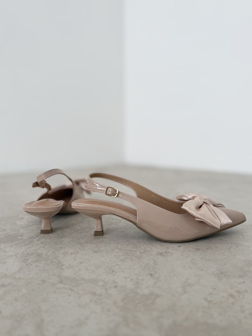 Elegantné kitten lodičky s jemným, ženským dizajnom a pohodlným 4 cm opätkom, ktorý poskytuje komfort aj pri dlhšom nosení. Lakovaný povrch pôsobí luxusne a dokonale dopĺňa dekoratívna mašľa, ktorá pridáva topánkam jemne romantický a šarmantný vzhľad. Otvorená päta zvýrazňuje elegantnú líniu chodidla a celkový strih opticky predlžuje nohu. Sú ideálne na spoločenské udalosti, pracovné stretnutia aj každodenné elegantné outfity.