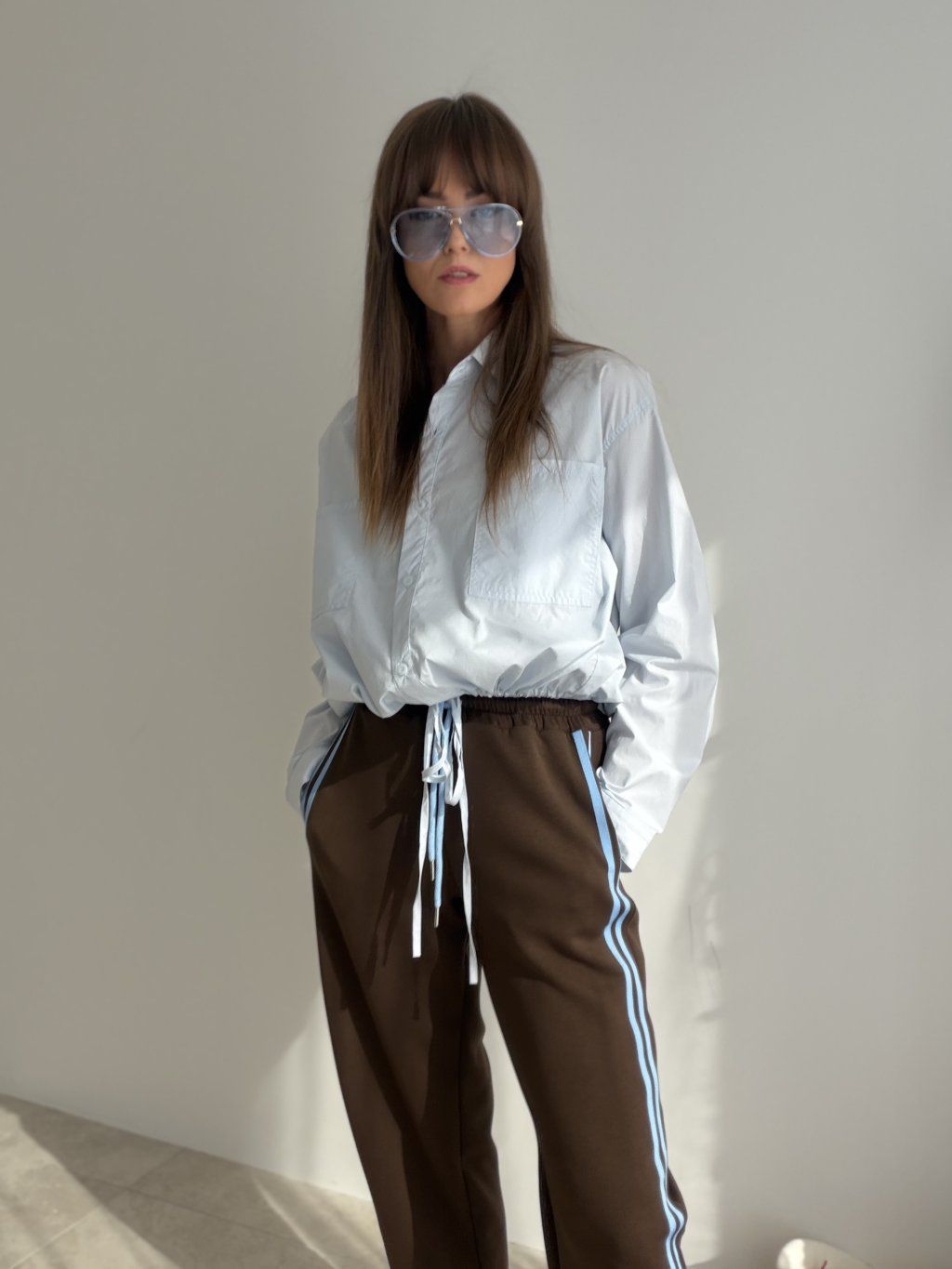 Ležérna a zároveň štýlová bavlnená košeľa s detailom na viazanie v páse, ktorý umožňuje prispôsobiť si strih podľa postavy. Dvojité náprsné vrecká a jemne nariasené rukávy dodávajú modelu nenútenú eleganciu. Ideálna voľba na každodenné nosenie – či už do mesta, na prechádzku alebo k ležérnemu outfitu.