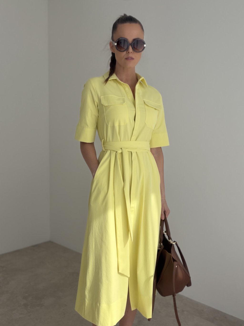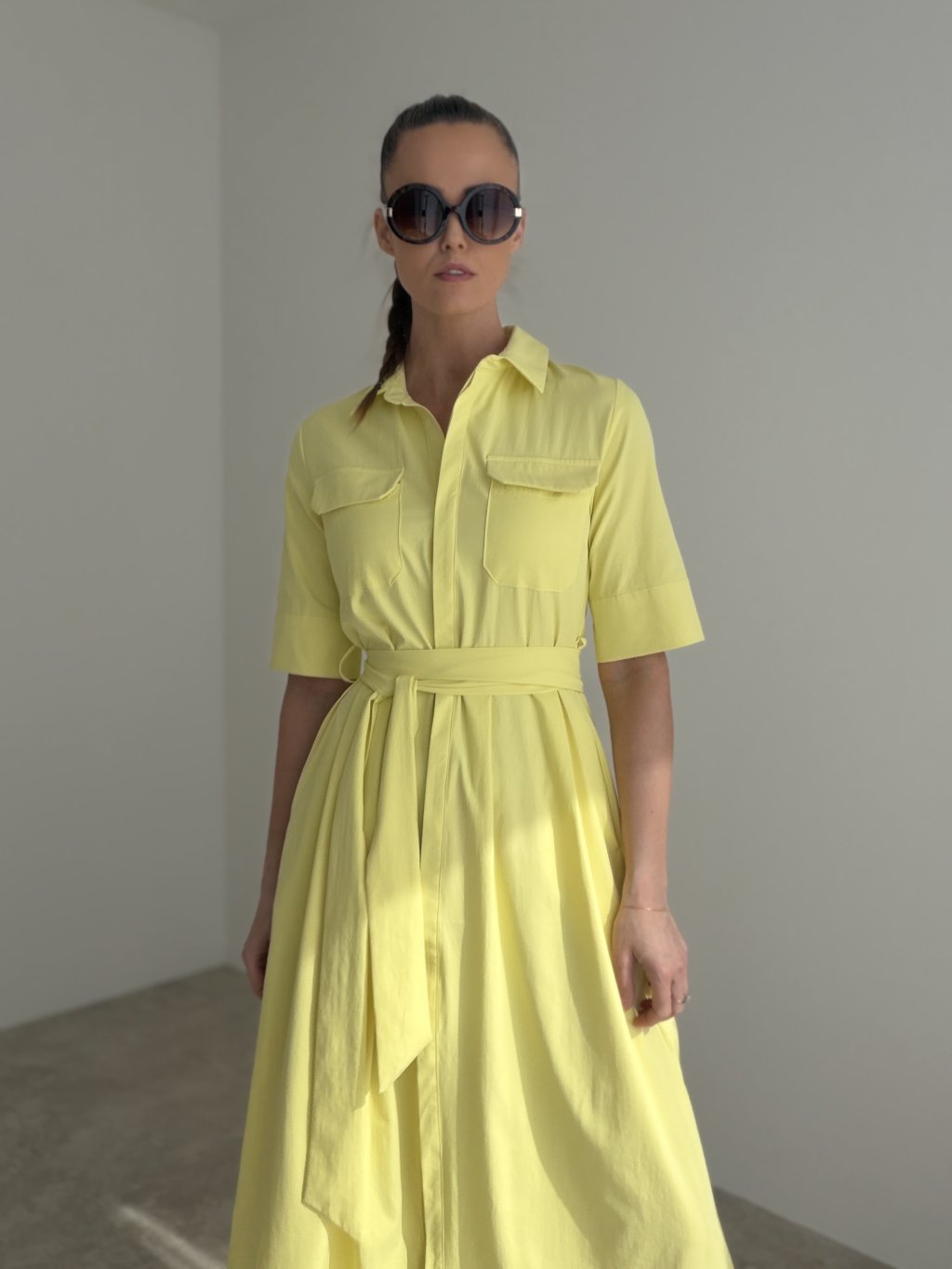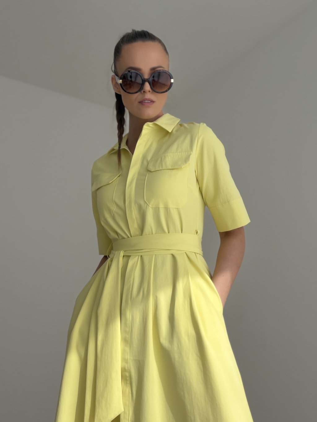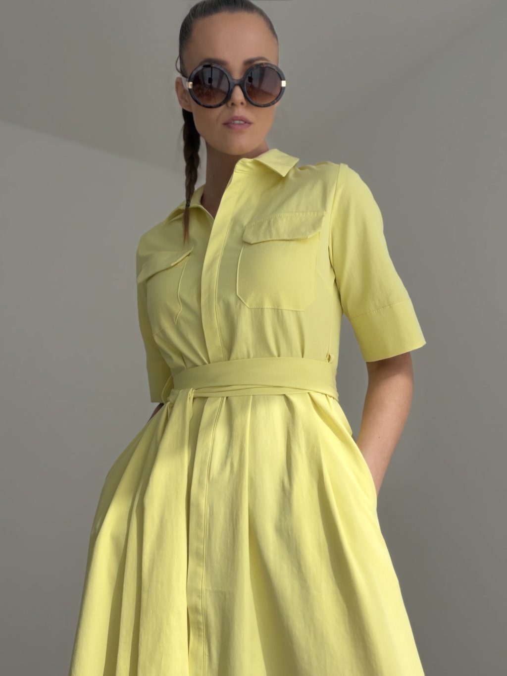 Elegantné košeľové šaty, ktoré pôsobia nadčasovo, žensky a veľmi upravene. Tento model vyniká čistými líniami, golierom, praktickým zapínaním a viazaním v páse, vďaka ktorému si vieš siluetu krásne prispôsobiť podľa seba. Výsledný vzhľad je sofistikovaný, no zároveň pohodlný a vhodný na množstvo rôznych príležitostí.