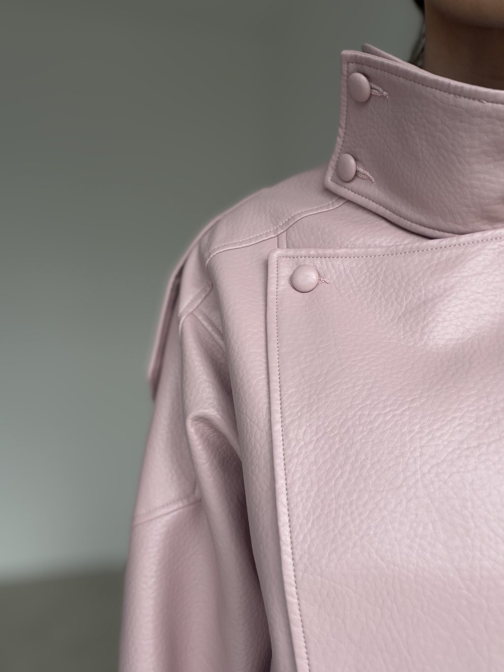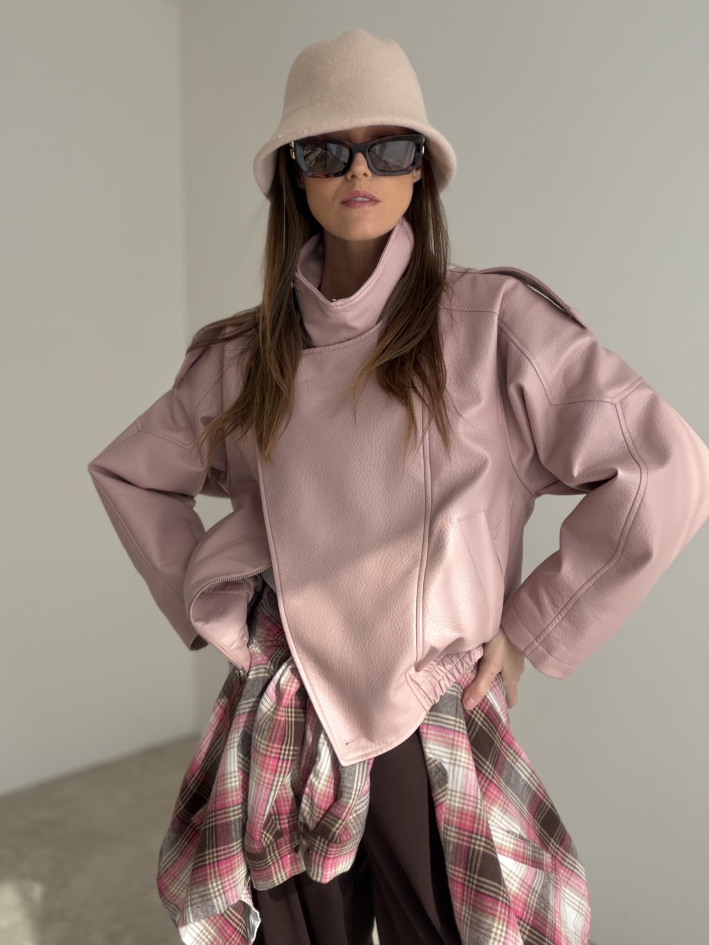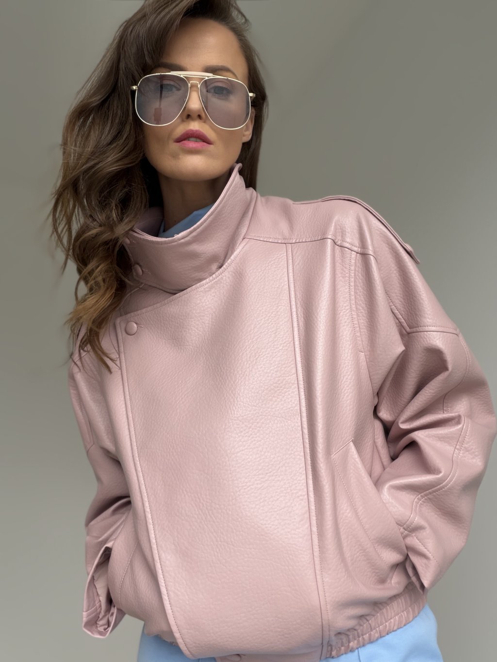 Koženková bunda s kratším strihom, výrazným golierom a detailmi, ktoré držia tvar. Skvelá na vrstvenie a ľahko kombinovateľná do elegantných aj casual outfitov.