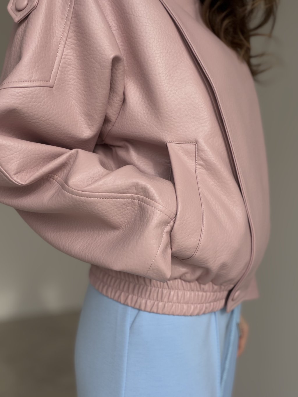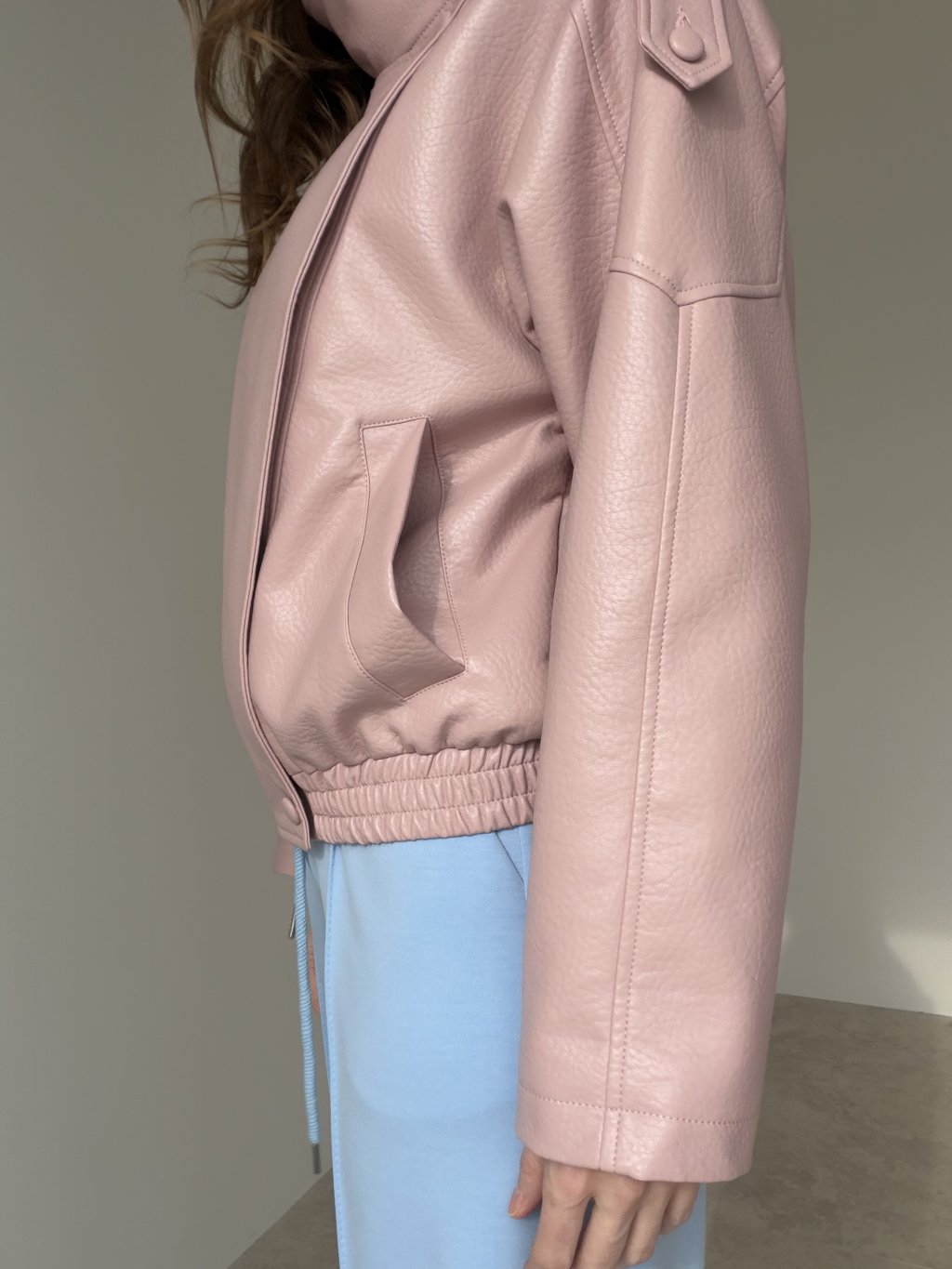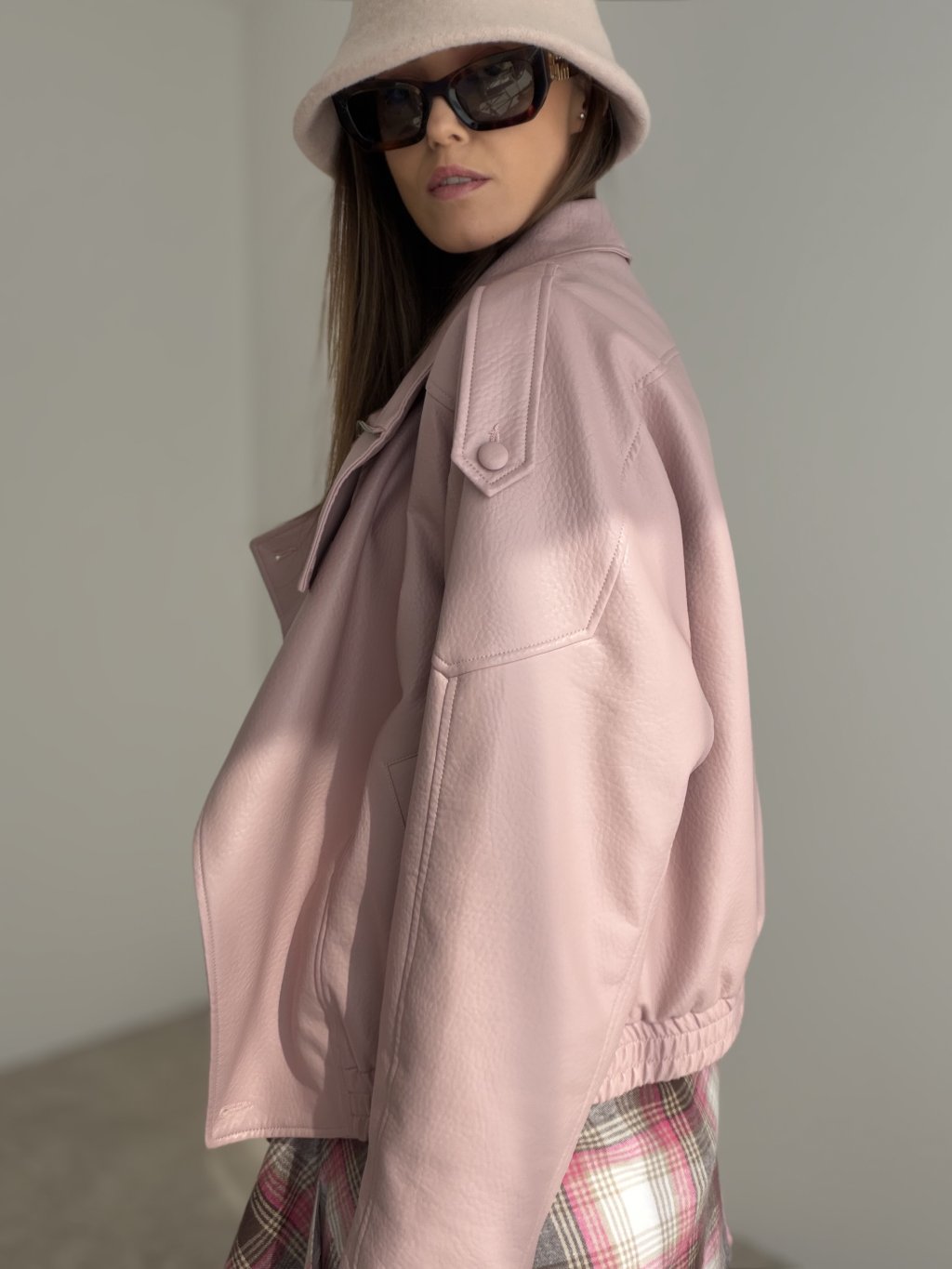 Koženková bunda s kratším strihom, výrazným golierom a detailmi, ktoré držia tvar. Skvelá na vrstvenie a ľahko kombinovateľná do elegantných aj casual outfitov.