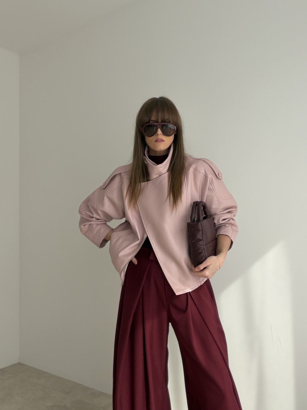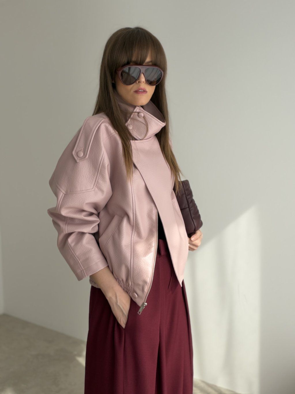 Koženková bunda s kratším strihom, výrazným golierom a detailmi, ktoré držia tvar. Skvelá na vrstvenie a ľahko kombinovateľná do elegantných aj casual outfitov.
