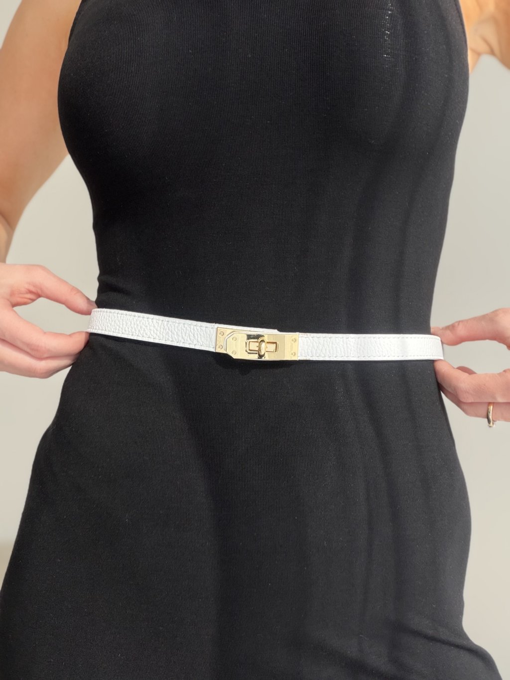 Kožený opasok s úzkym profilom, ktorý pôsobí elegantne a zároveň decentne zvýrazní pás. Kvalitné spracovanie z pravej kože a výrazná kovová pracka dodávajú outfitu luxusný detail bez toho, aby pôsobil prehnane. Vďaka čistým líniám sa hodí k nohaviciam, sukni aj šatám a ľahko ho skombinuješ do práce aj na večer. Opasok je príjemný na nosenie, dobre drží tvar a slúži ako praktický aj štýlový doplnok.