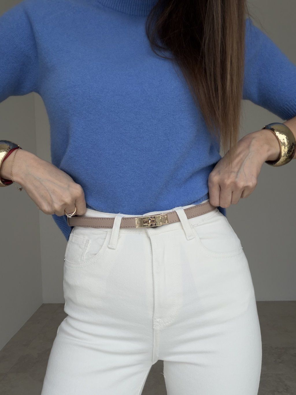 Pri minimalistických outfitoch nechaj vyniknúť pracku a zvoľ jemné šperky.