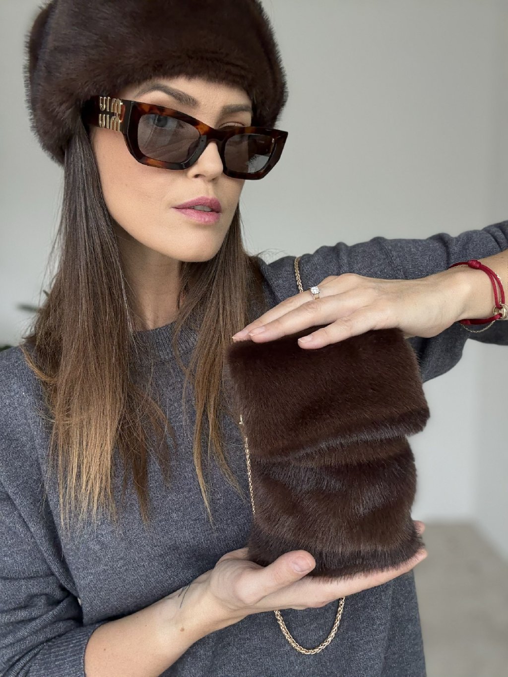 Kožušinová kabelka s elegantným retiazkovým ramienkom je štýlovým doplnkom, ktorý dodá každému outfitu výnimočný šmrnc. Hebký povrch vytvára luxusný dojem a zároveň zaručuje príjemný pocit pri nosení. Kabelka je doplnená o praktické zapínanie na magnetický gombík, vďaka čomu bezpečne uchová vaše drobnosti. Je ideálnou voľbou na spoločenské príležitosti, večerné výjazdy alebo ako originálny detail k bežnému looku.