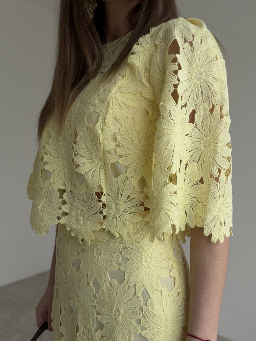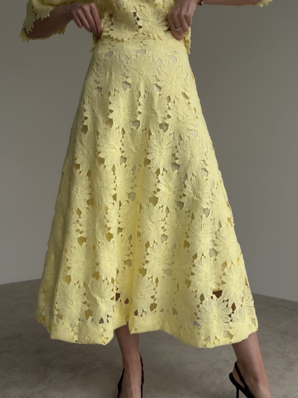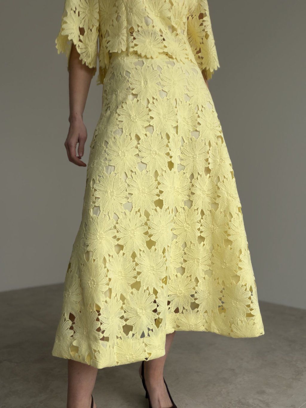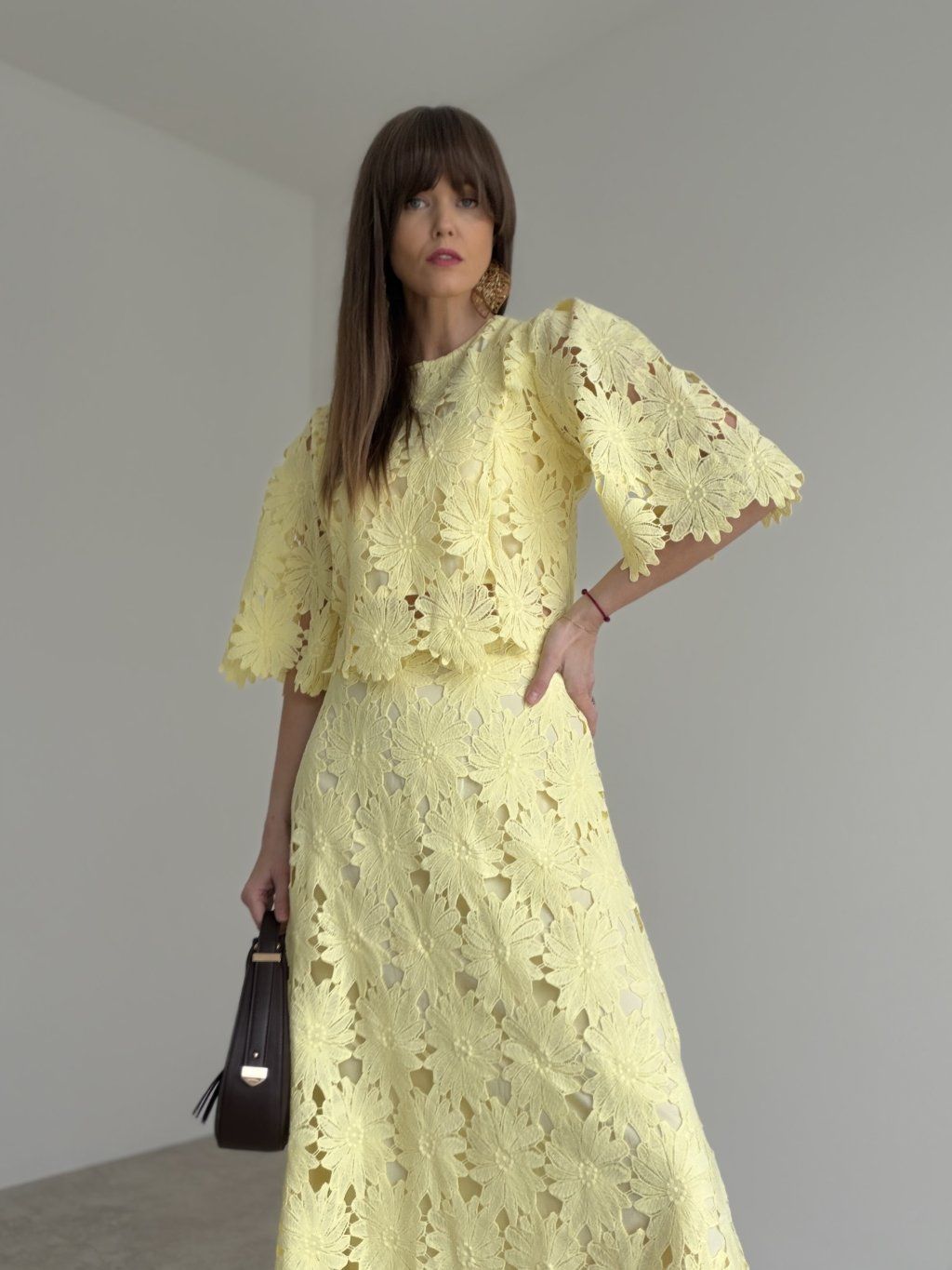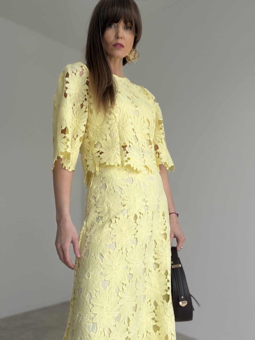 - komplet krásne vynikne s elegantnými sandálmi, lodičkami alebo jemnou kabelkou