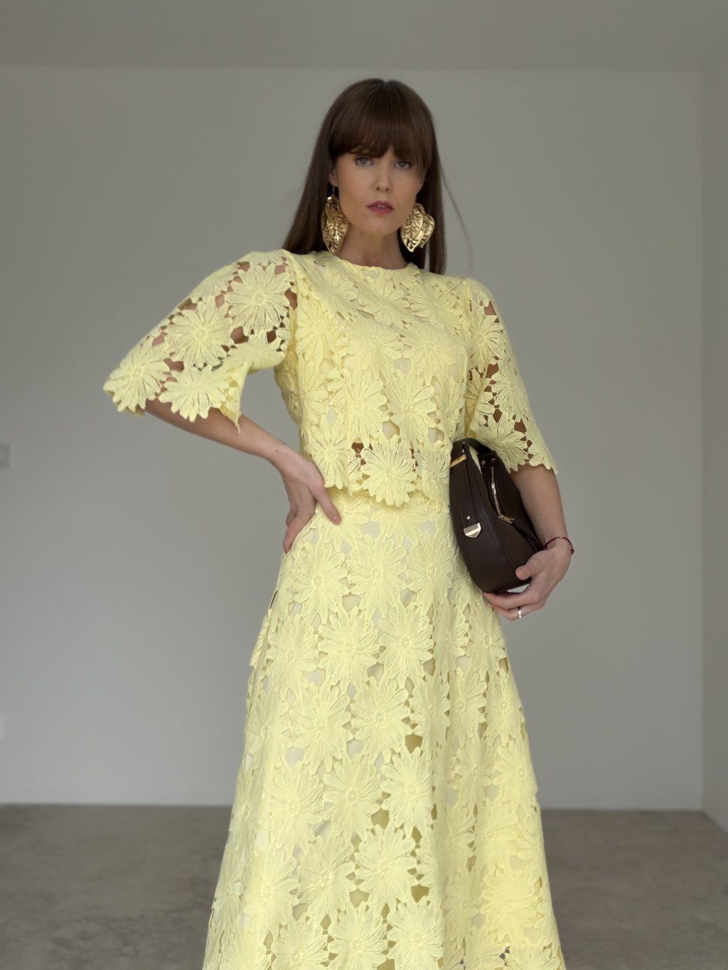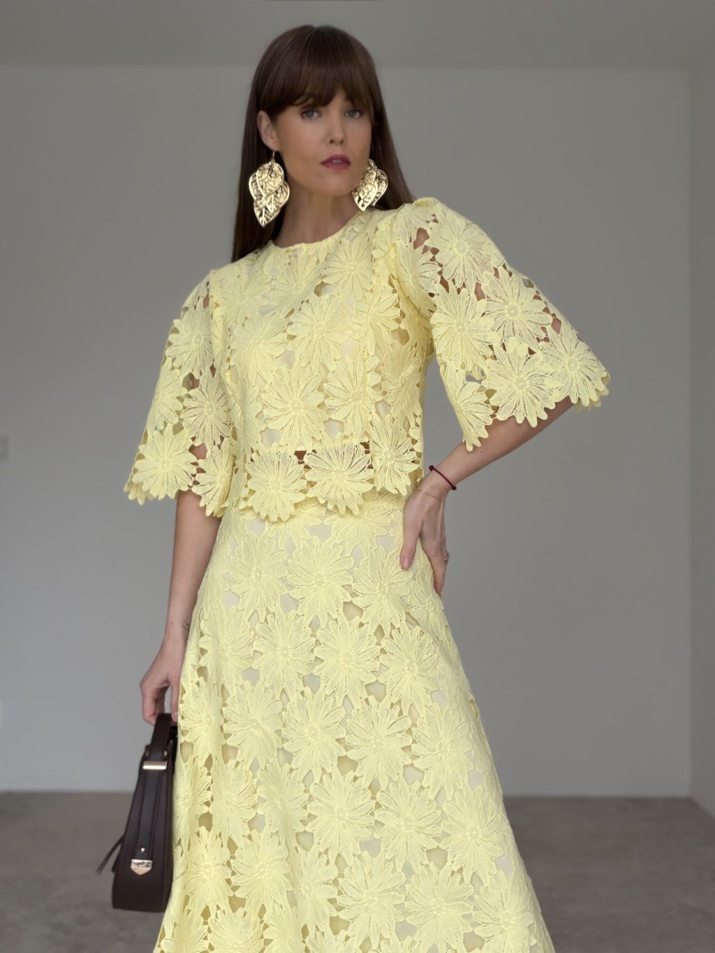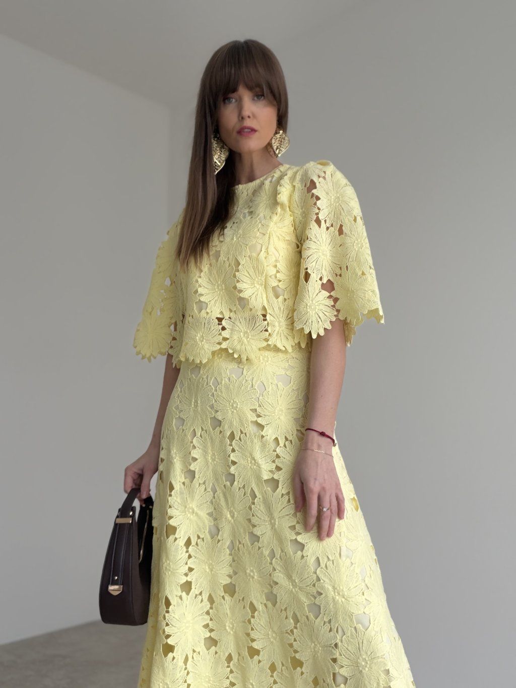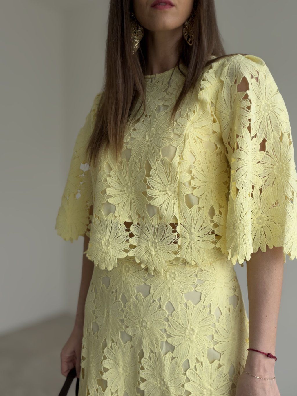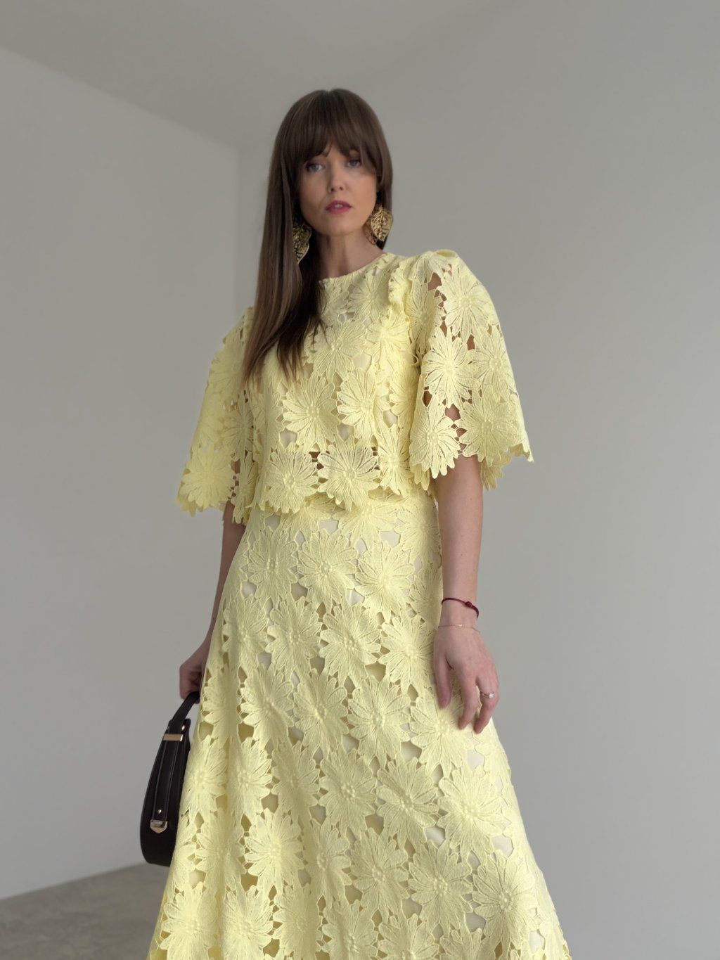 - komplet krásne vynikne s elegantnými sandálmi, lodičkami alebo jemnou kabelkou