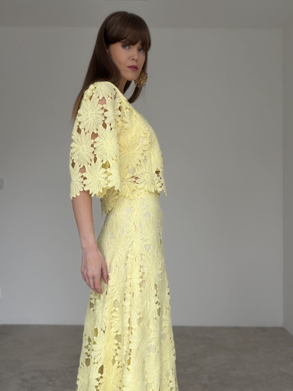 Tento komplet pôsobí veľmi elegantne, žensky a výnimočne. Jeho dominantou je výrazná štruktúra materiálu s romantickým vzorom, ktorá celému modelu dodáva luxusný a upravený vzhľad. Vrchná časť má voľnejší, sofistikovaný strih, ktorý krásne dopĺňa spodný diel a spolu vytvára harmonický, premyslený celok. Výsledný efekt je slávnostný, no zároveň jemný a veľmi vkusný, takže komplet zaujme bez toho, aby pôsobil príliš výrazne.