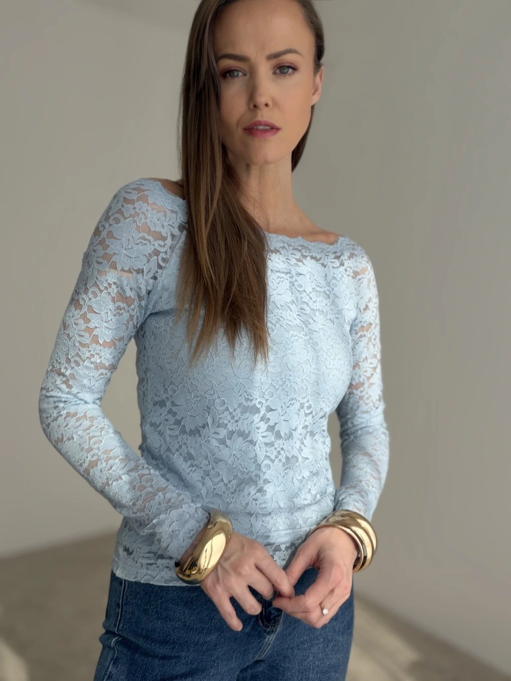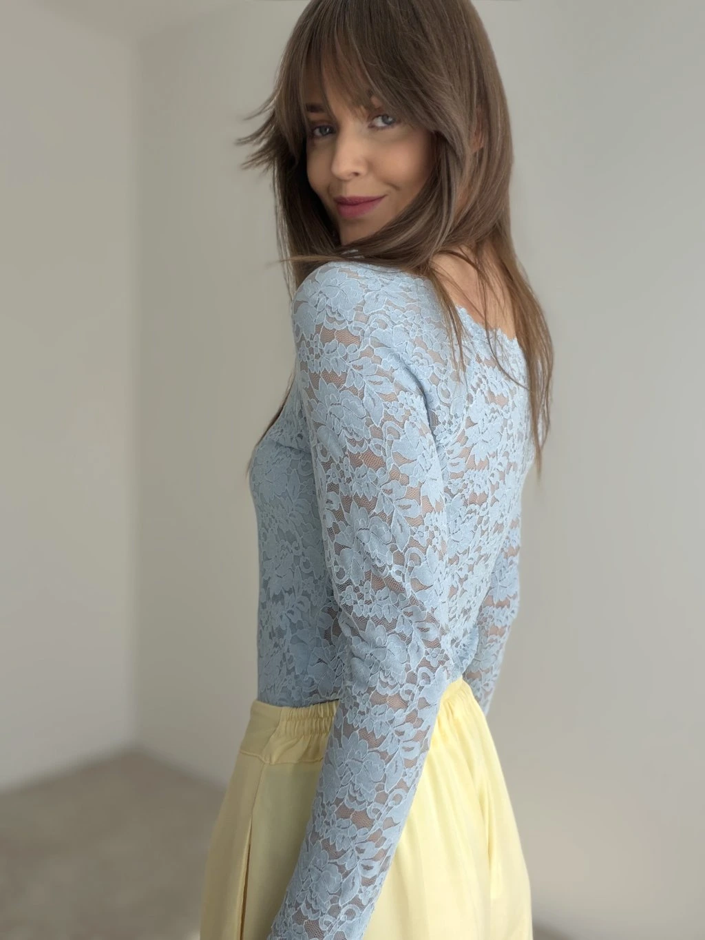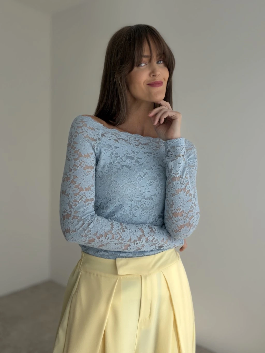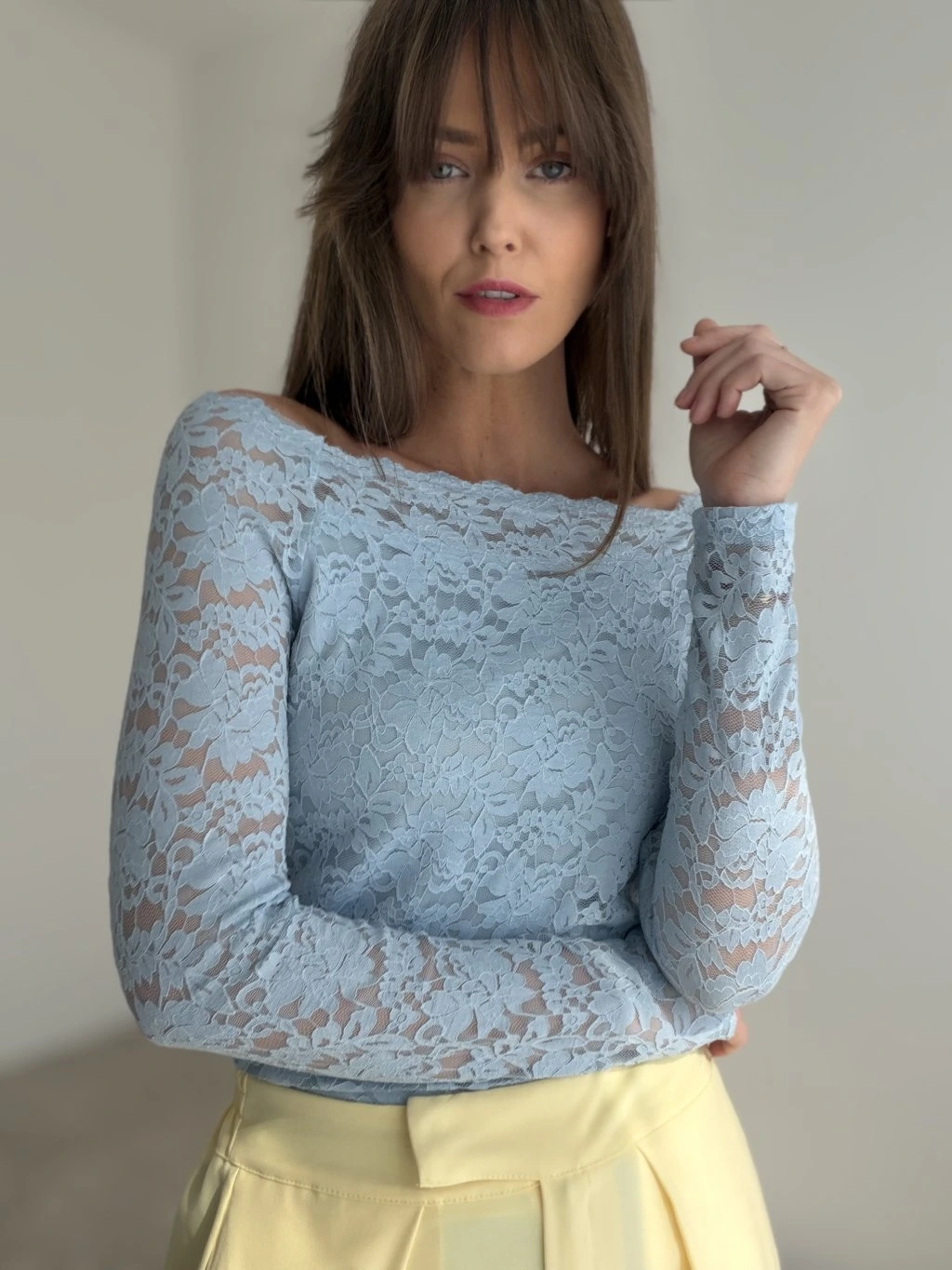 Elegantný krajkový top je presne ten kúsok, ktorý vie okamžite pozdvihnúť aj jednoduchý outfit. Má ženský, jemne odhalený výstrih a priliehavý strih, ktorý pekne kopíruje postavu bez zbytočného objemu. Krajka pôsobí luxusne a zároveň ľahko, vďaka čomu je top ideálny na bežné nosenie aj na príležitosti, keď chceš vyzerať upravene a štýlovo. Skvelo sa kombinuje s nohavicami s vysokým pásom, sukňou aj pod sako.